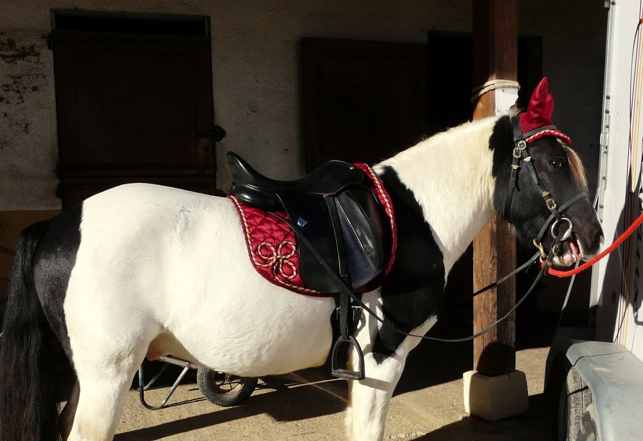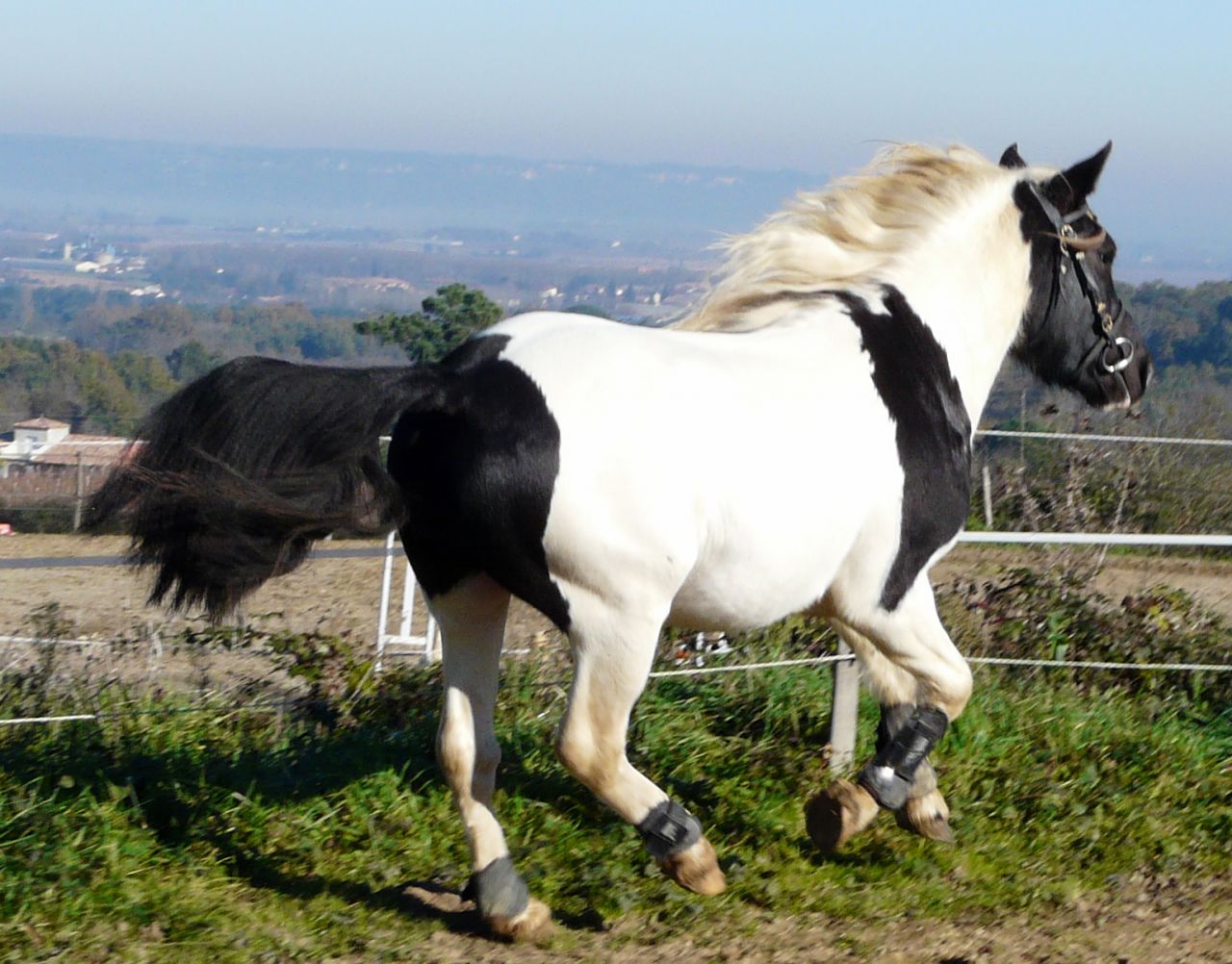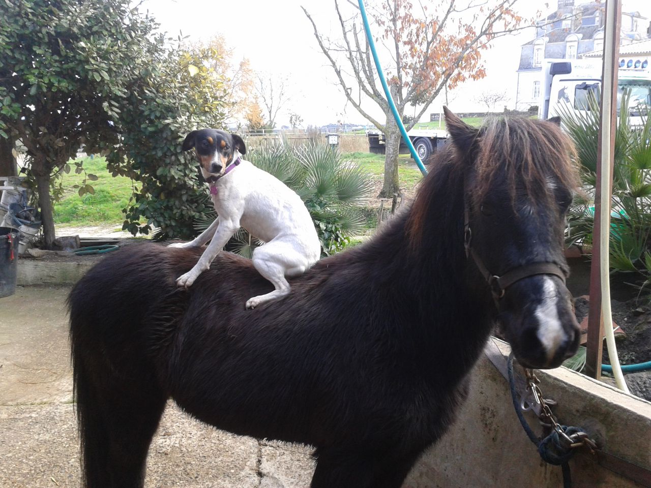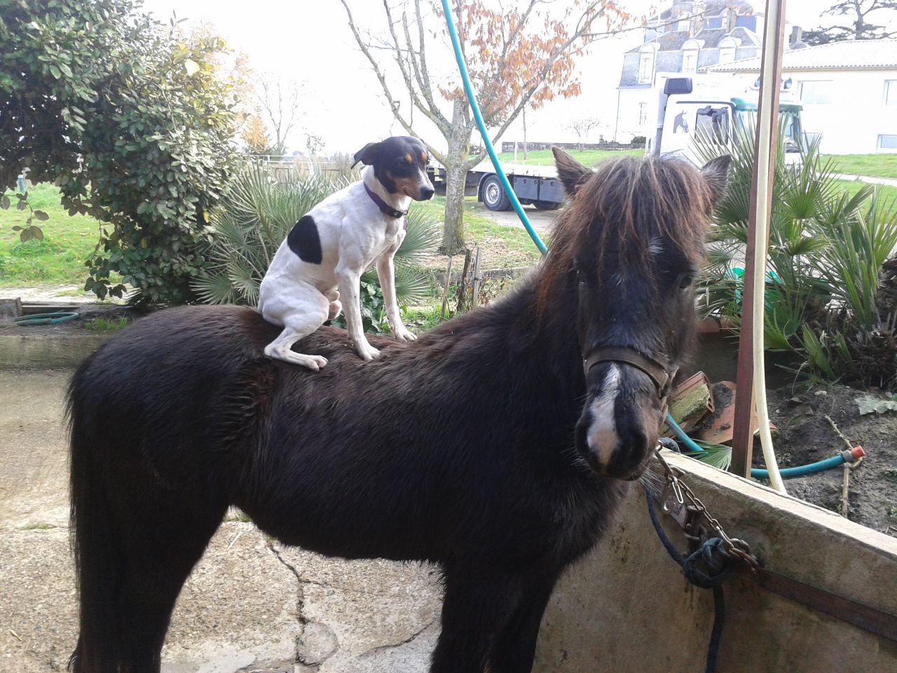 | Dire merci | Salut, j'ai ouvert ton post un peu par hasard et je viens de voir tes photos avec le chien sur ton poney. J'aurai aimé savoir quelle etait la race de ton chien! ![]() Sinon j'aime beaucoup ton pie noir il fait très sport! ![]() |