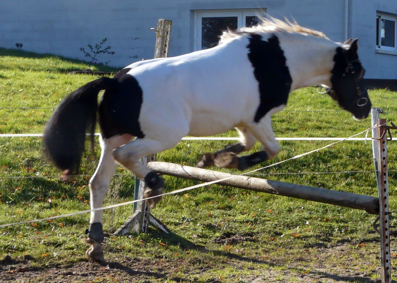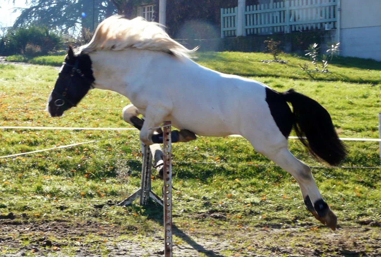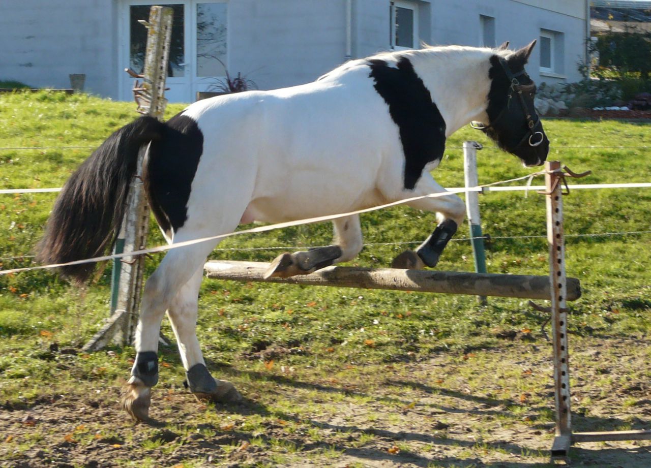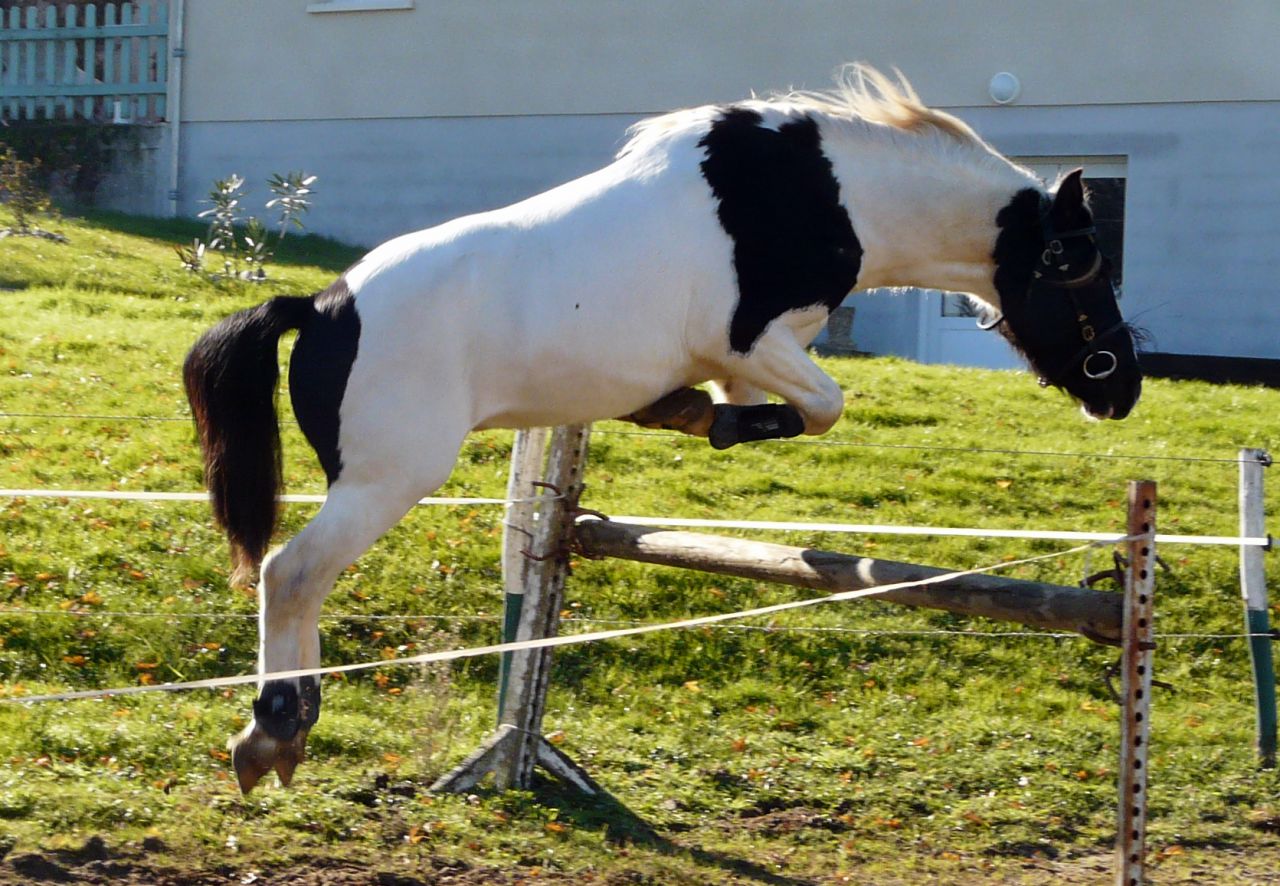 | Dire merci | Bon la technique n'est toujours pas bonne mais il a pris une meilleure place bien que ça soit encore un peu près et il a fait l'effort de passer bien au dessus La séance ne s'arrête pas la ![]() je mets la longe sur le mors et je tente les exercices cession latérale d'encolure + cession des hanches, tout nickel de suite! Une petite résistance à main droite mais rien de méchant. Je continue avec un montoir des 2 cotés, immobile et pas stressé, nickel, je redescend, puis j'essaie de la mettre en longe sur le cercle au pas. Il comprend assez vite, ce qui me permet de lui apprendre les ordres marche arret. Je continue un peu en me décalant derrière lui pour simuler la marche aux longues renes, il s'en fiche donc super, puis j'ajuste la rene, il donne la tête et amorce le tournant je refait plusieurs fois aux 2 mains super.Pour finir, je remonte sur son dos, cessions latérales d'encolure des 2 côtés, puis je mets mon talon sur son flanc pour espérer pousser les hanches, et ... CA MARCHE !!! il bouge de quelques pas a chaque main puis finir par faire plusieurs pas d'affilée et s'arrête, sans stress ![]() Je laisse sur ça |