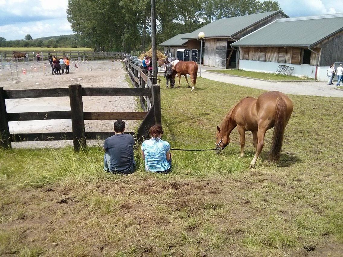 | Dire merci | Oui fluoxetine ! J'ai hâte car nous aurons face à nous des concurrents de taille ! Mais j'ai assez confiance en notre travail, d'ailleurs j'ai retravaillé un exercice qui nous pose problème ce matin et Pepsi progresse ! Plus qu'à espérer qu'il soit concentré le jour J ! elphe oui ! Il se laisse bien caresser ! Ce matin j'avais l'intention de rebosser le "licol" (désensibilisation uniquement) mais ils étaient au box/paddock donc pas trop envie qu'il se sente "coincé" et dans mon état, pas trop envie de risquer un coup ou de me faire bousculer. Mais du coup il s'est couché et j'ai pu m'installer à ses côtés, ça ne l'a pas dérangé pour faire un dodo ! |