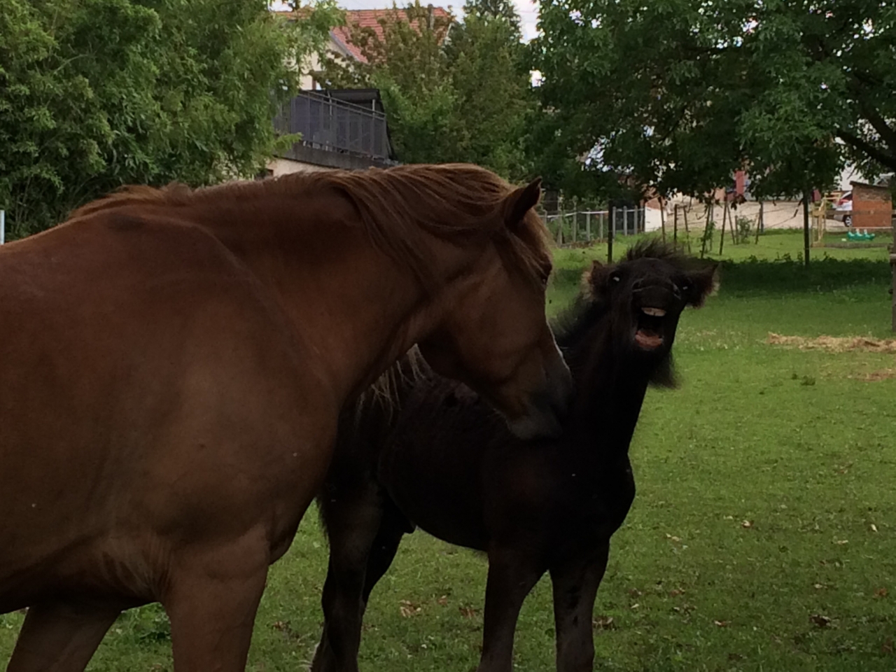 | Dire merci | haha c'est facile quand le cheval est aux boutons ! Pour le cerceau non, c'est la première fois qu'il a fait ça ! J'étais surprise qu'il y aille, il s'est baissé en même temps c'était juste trop chou ! Pour le van sinon, j'ai décidé de le vendre pour en acheter un tout neuf, tout beau ! ![]() Sinon, Pepsi au pré, il saillie les juments, tranquille. ![]() |