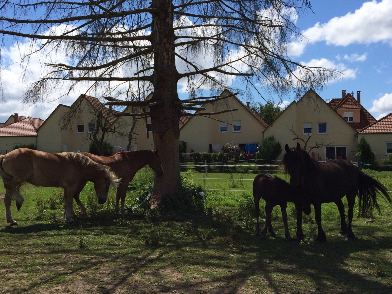 | Dire merci | CONCOURS EQUIFEEL Aujourd'hui, c'était le championnat régional d'Equifeel ainsi que notre ultime équifeel de l'année ! Pour l'occasion, on a fait quelques kilomètres supplémentaires pour nous rendre jusque dans le 68, à Munster en compagnie de ma soeur, Pepsi et mon chéri ! Donc départ de la maison à 6h environ, j'avais préparé les affaires la veilles donc il n'y a eu qu'à atteler le van et embarquer Pepsi ! Je suis ravie car il entre vraiment bien mais je crois qu'il était pas bien réveillé, il est rentré comme une fleur ! Même pas qu'il a râlé d'être sorti du pré ! Au final c'est Galant qui aurait bien aimé nous rejoindre, il attendait à la porte que je m'occupe de lui mais...pas le temps, une caresse et ciao ! On a récupéré ma soeur en cours de route et go, environ 2h de route ! Une fois sur place, je vais à la reco directement puis je décharge la bête, encore groggy ! ![]() Il y avait l'épreuve poney avant la mienne donc j'ai pris mon temps, je l'ai brossé tranquillement avec ma soeur puis j'ai un peu détendu. Pas grand chose, juste histoire de remettre en place les boutons car il n'a rien fichu depuis le dernier concours hormis une ou deux mini-séances durant la semaine. Ici sur la détente en train de rien faire, je le trouve pas si mal pour un cheval H24 au pré ! ![]() Petit portrait de famille ![]() |