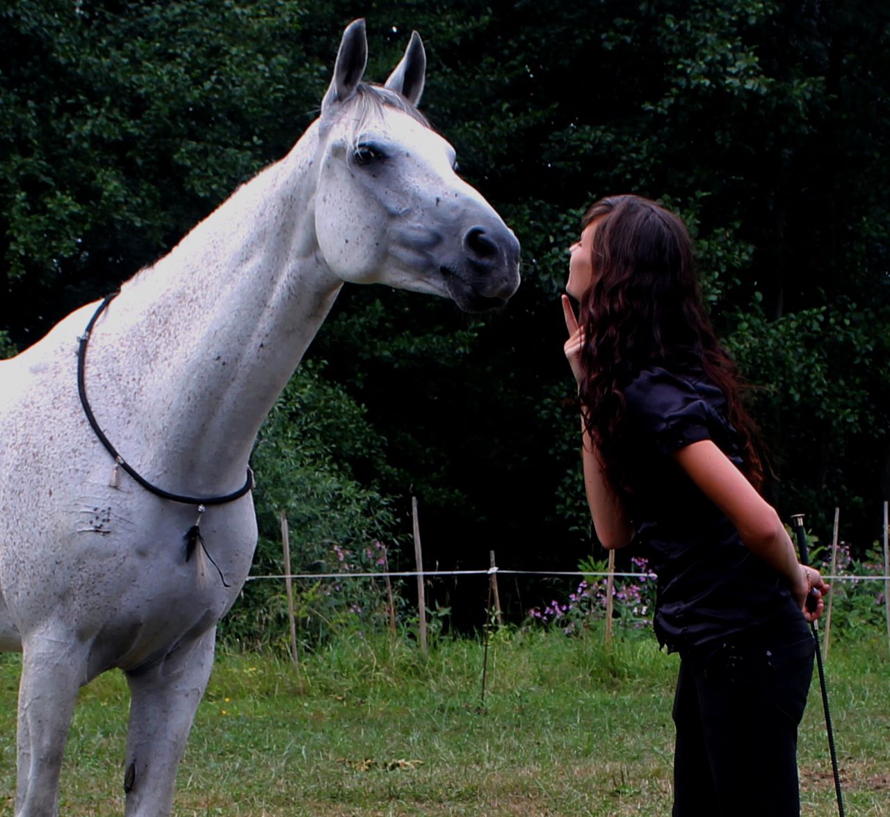 | Dire merci | C'est la simple histoire d'un petit cheval gris, celui avec qui "tout" débuta. Il naquit il y a déjà neuf ans, par un matin de mai. Sa maman, ponette croisée arabe, et son père, pur sang arabe, lui offrirent un caractère plutôt contrasté ; malicieux, intelligent, têtu, curieux, peureux, et surtout emplie de générosité et d'envie de bien faire. Poulain gris ardoise presque noir, on lui conféra le nom d'Océan Indien, peut être pour rappeler sa future couleur , celle de l'écume des vagues. Océan grandit donc, et, destiné a l'équitation anglaise, il fut vendu à ses trois ans pour démarrer sa vie de cheval de club. Doux et gentil, attentionné, attentif et travailleur, il tentait tant bien que mal de faire son boulot. Mais les mois passaient, les années même, et Océan, a force d'irrespect et d'incompréhension de la part de ses nombreux cavaliers, devint amère et éteint. Ce cheval joyeux de base montrait les fesses à ceux qui l'approchaient, refusait de sauter, tirait la tronche perpétuellement, et en extérieur se montrait souvent incontrôlable. C'est dans ces conditions que je pris conscience un jour de juin en 2oo8 de l’existence de ce petit gris, qui s'était déjà beaucoup éclairci. Je venais de voir partir ma première demi pension, un américain bai a l'oeil bleu, pétillant et d'une gentillesse sans pareille, que je pensais irremplaçable. Quand on me proposa ce gris belliqueux en demi, je n'étais pas très rassurée .. A l'époque cavalière de bien faible niveau, ne connaissant rien de la psychologie et du vrai fonctionnement des chevaux, je ne savais pas si je serais capable de me faire accepter par un tel cheval qui me donnait l'impression de se rebeller. Mais au fond j'avais bien envie de jouer le jeu, je crois que quelque part je comprenais déjà que ce cheval n'était qu'incompris.. On débutait donc nos premiers essais ensemble. C'était pas facile pour moi de comprendre un cheval aussi sensible qui me sondait dès que je pénétrais dans le fond de son box sombre.. Pourtant, à force de patienter a l'entrée en attendant qu'il daigne se tourner vers moi au lieu de m'offrir sa croupe, il finit par le faire de lui même sur mon appel. Je commencais à comprendre la vraie nature de ce beau grisou. En selle, on progressait à petit pas, mais le saut n'était pas tellement son fort. Au fil des semaines il m'offrait chaque jours de nouvelles victoires ; une séance sans refus, une douche sans bouger, une balade sans demi tour, un jour sans baisser les oreilles , oeil mauvais. En Aout 2oo8, et pour mon plus grand bonheur, nous achetâmes Océan Indien. C'était le huit, exactement, que nous signions les papiers, un samedi matin. Ce jour là également marquait le début du redébourrage western d'Océan, destiné au reining et au trail. Cette discipline lui convenait bien mieux, il était moins assisté, plus libre et responsabilisé, il avait la possibilité de s'exprimer dans la détente et la joie de travailler dans le bon sens. Un jour où j'avais laché MON (comme il était bon de se dire que celui là on ne me l'enlèverait pas!) cheval dans le manège, je m'approchais de lui pour le caresser. En faisant demi tour pour revenir au centre du manège, je m'aperçus que j'étais suivie .. Océan me talonnait, nez contre mon épaule. Je partais en courant, il me suivit au trot. Je m'arrêtais, lui aussi. On joua comme ça de nombreuses fois par la suite et ce fut le début de nos expériences à pied. Cette discipline au fur et à mesure prit une place entière dans notre duo, a tel point que grace au travail a pied, je connaissais Océan aussi bien que lui me connaissait. Elle fit de nous un couple partenaire, et nous appris ce que c'était que la joie d'être ensemble, tout simplement. Fin 2oo9 nous changeâmes les (car un deuxième équidé nous avait rejoins, Kenny, petite canaille baie pleine de ressource et de secrets) chevaux d'écurie. Ce fut dur de quitter l'endroit ou j'avais tout appris avec Océan, et tant d'autres chevaux .. Quartz, New Look, Daisy, Paprika, Nathan, Espoir, Doc, puis Sisko, Starlette, Soleil, Halloween, "Bouboule", tant de chevaux qui m'avait aussi tant appris.. Mais notre nouveau "domaine" était un endroit superbe, et le sable de ses manèges et de sa carrière vit naitre mes premières figures de cirque avec Océan. Couché, cabré, révérence, jambette, et tant d'autres tours que j'apprenais seule avec mon Océan, qui me montrait chaque jours comment parler avec lui. Je comprenais de mieux en mieux comment fonctionnait les chevaux et comment résoudre les problèmes rencontrés. |