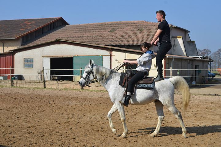 | Dire merci | miss_rapido, Pour la table, je commence par sauter un banc, puis deux bancs à deux foulées, puis la table simple avec bancs en oreille, et de temps en temps j'ajoute un truc : j'enlève le filet, la selle, mon chapeau au dessus du saut, je lâche les mains, etc. Je termine toujours par un couché monté, les gens aiment beaucoup le contraste effusion au saut / calme au couché. Pour les numéros de nuits, je vais faire ça avec deux de mes gars qui auront des bolas, de chaque côté de la table, ça promet d'être vraiment sympa Le p'tit "câlin", c'est tout bête effectivement et trèèès simple à apprendre, mais bon visuellement c'est sympa et ça plait aussi. JuKillou, j'espère, j'espère... |
