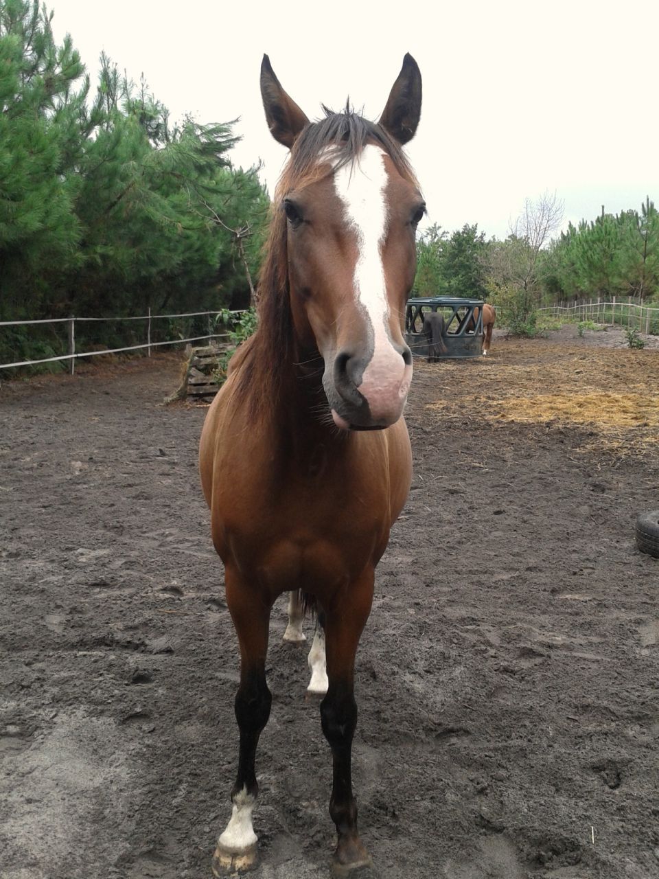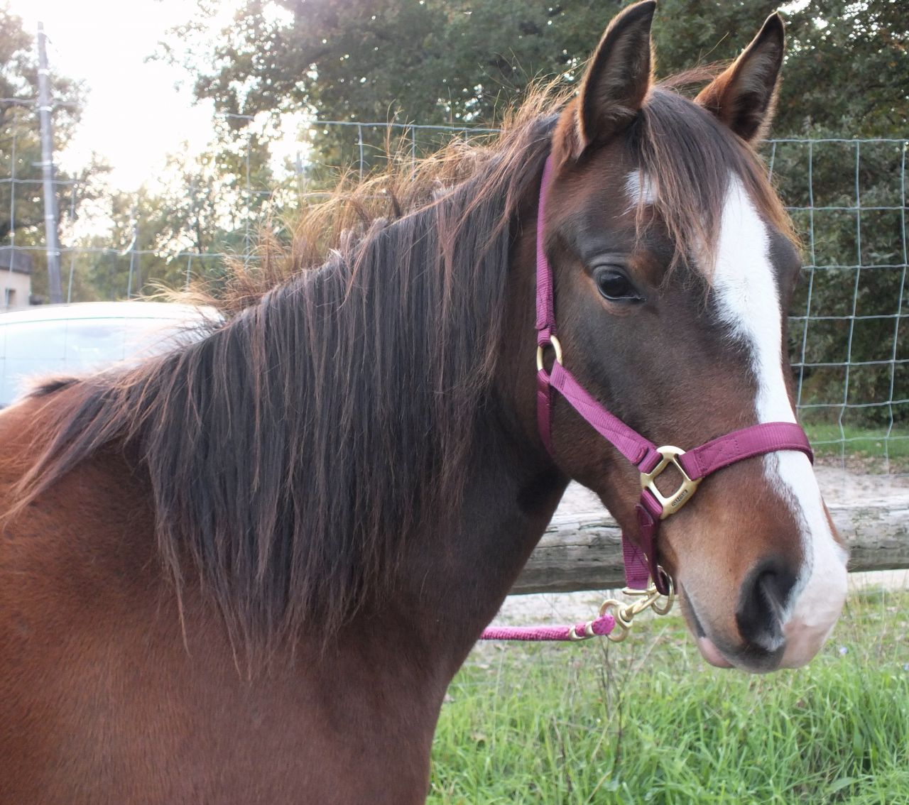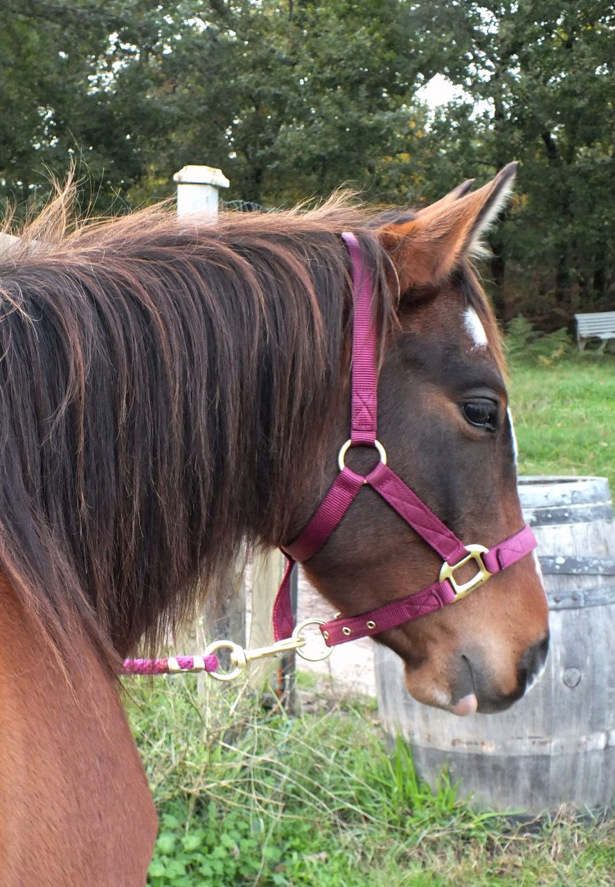 | Dire merci | Elle a toujours été montée en mors par moi. Avant elle avait un mors aiguilles tout simple ou sinon il l'avait en licol et à cru mais pour 200m pour la ramener au pré... |