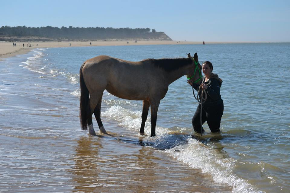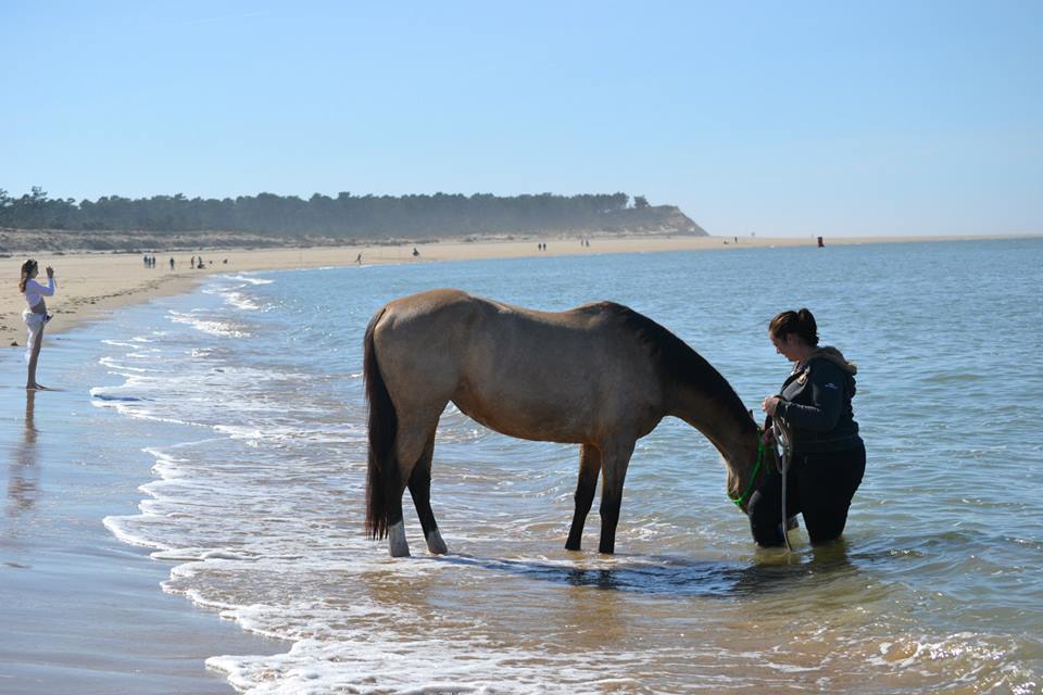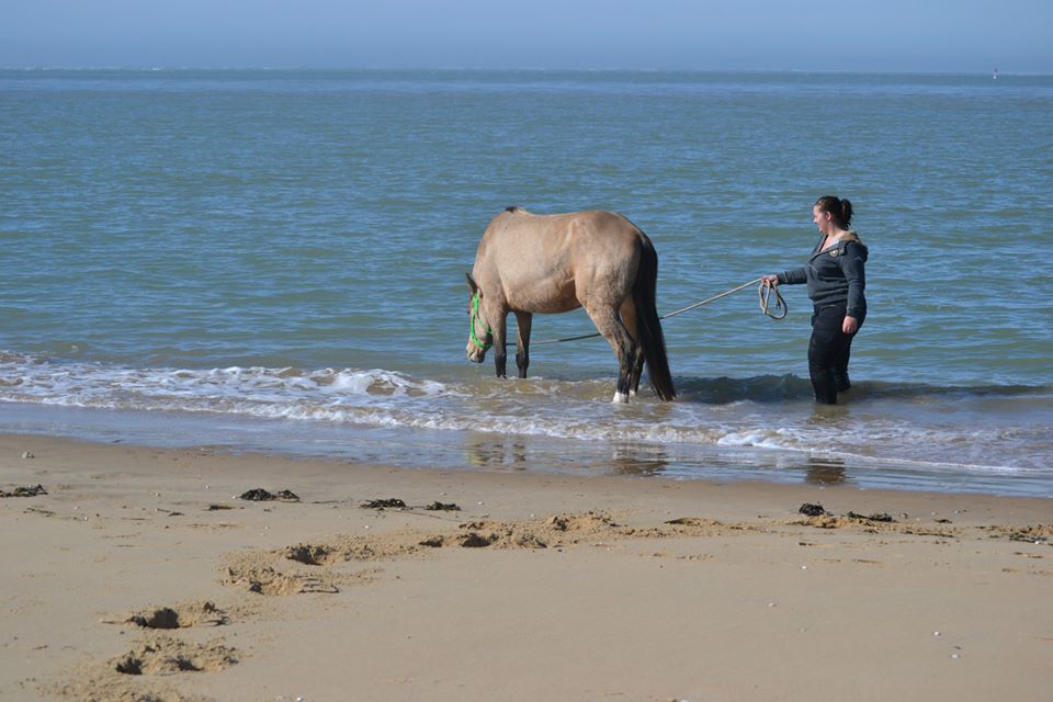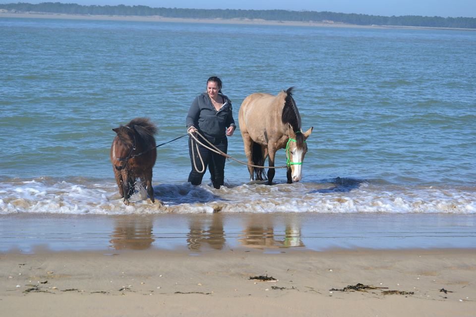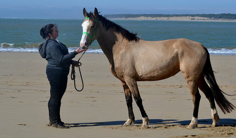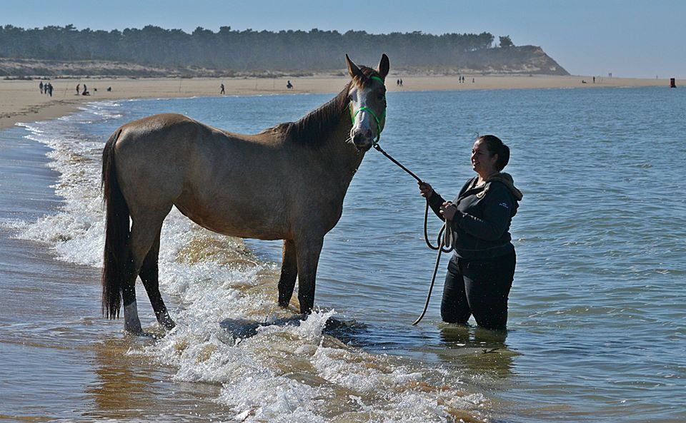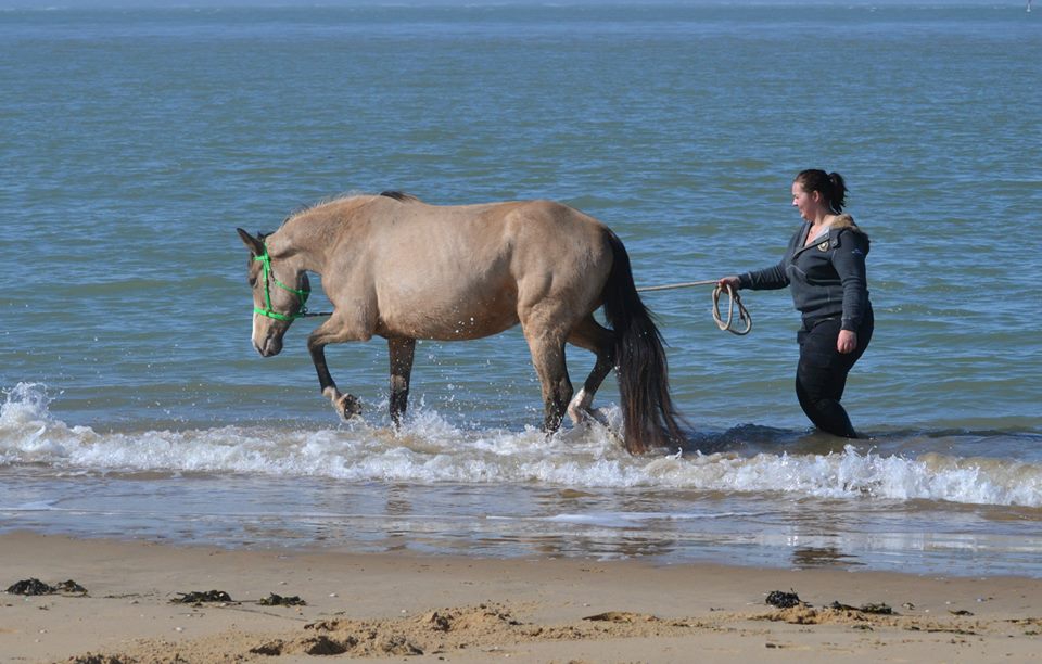 | Dire merci | Toi ça va tu les a vu sur FB ! et puis mon ordi est mort ..... du coup marsupylami , peux tu en mettre quelques unes s'il te plait ?? Sinon, non j'ai pas pu conduire, mon père n'a pas voulu Donc pour le résumé : 10h, je pars chercher les chevaux au champ, et les ramènes chez moi à pied ( 3km ), histoire de leur doucher les membres, et de les faires tous beau avant de partir !11h, des loulous qui montent très bien dans le van, et ZOU, le convois est en route, direction LA PLAAAAGE !! Arriver sur le parking vers midi, nous sommes rejoint par une amie et sa jument !! On attache les loulous aux arbres, première fois pour les 2 miens, et binnnnnn, aucune réaction, ils sont resté bien 1h accroché, sans bouger, bref ça annonce une bonne aprèm quoi en début d'ap, c'est parti, direction la plage, des loulous motivés, intrigué, mais vraiment très gérable, y'a du monde pas mal de passage, mais aucuns soucis !!! L'entrée dans l'eau ce fait hésitante, mais la jument de ma pote étant plus habitué, ça nous à pas mal aidé !! Suite à ça, Babydoll à totalement kiffé l'eau, et rentrée tranquille pour aller barboter Ce fut une journée absolument GENIAL, qui m'a prouvé a quel point ma jument est extraordinaire, et Pin's aussi d'ailleurs !! C'était la première, mais certainement pas la dernière !! voilà voilà |