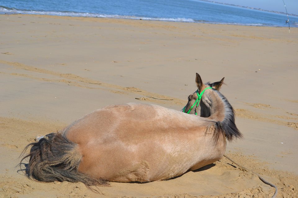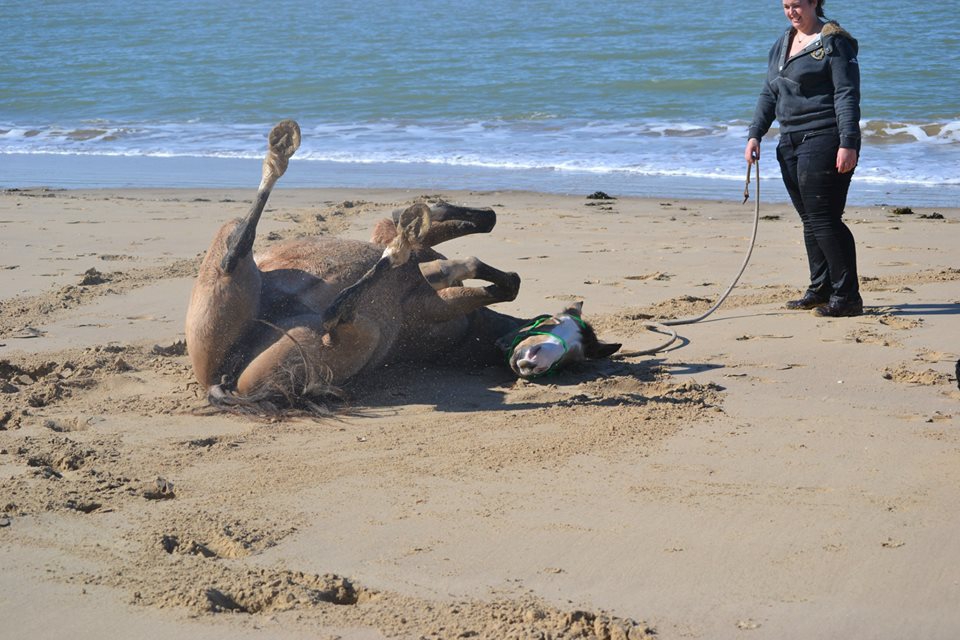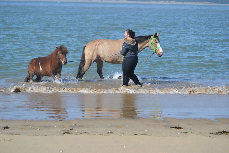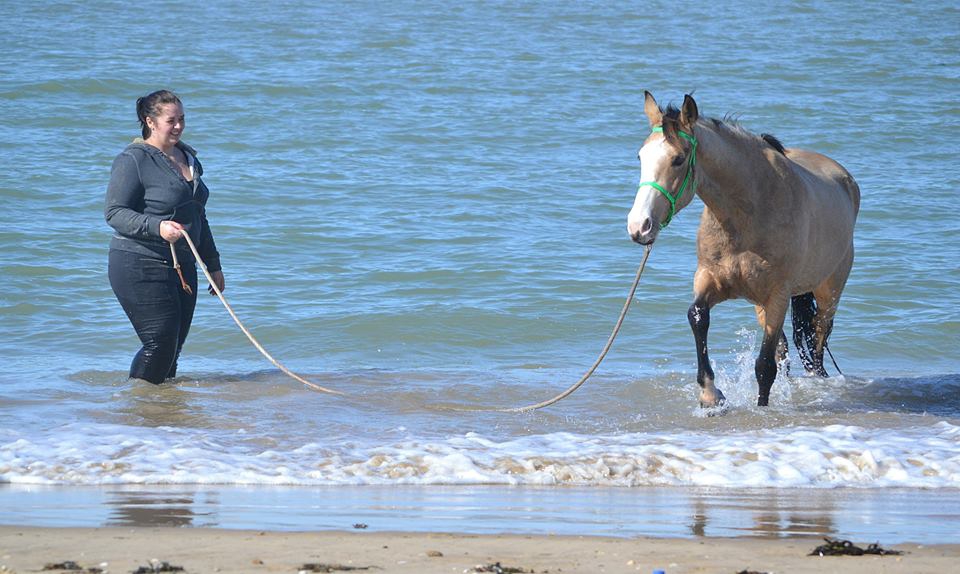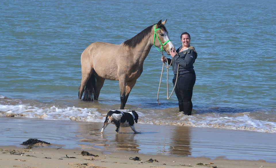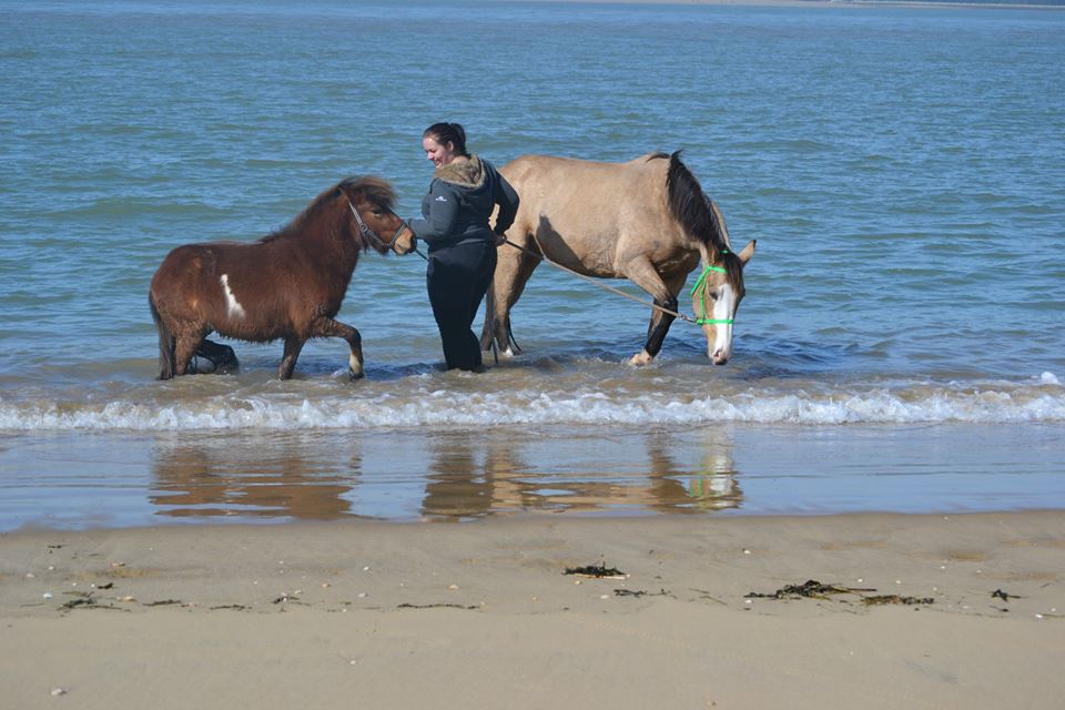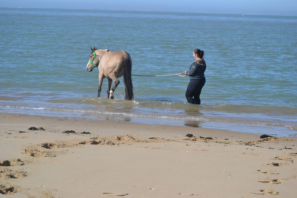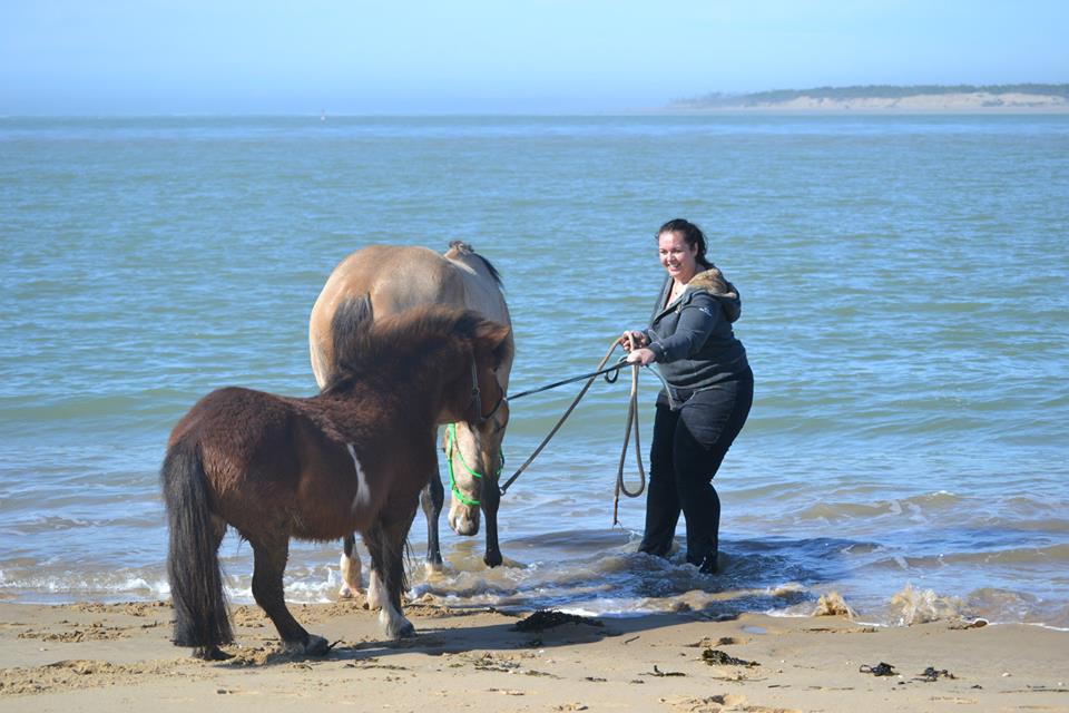 | Dire merci | Toi ça va tu les a vu sur FB ! et puis mon ordi est mort ..... du coup marsupylami , peux tu en mettre quelques unes s'il te plait ?? Sinon, non j'ai pas pu conduire, mon père n'a pas voulu Donc pour le résumé : 10h, je pars chercher les chevaux au champ, et les ramènes chez moi à pied ( 3km ), histoire de leur doucher les membres, et de les faires tous beau avant de partir !11h, des loulous qui montent très bien dans le van, et ZOU, le convois est en route, direction LA PLAAAAGE !! Arriver sur le parking vers midi, nous sommes rejoint par une amie et sa jument !! On attache les loulous aux arbres, première fois pour les 2 miens, et binnnnnn, aucune réaction, ils sont resté bien 1h accroché, sans bouger, bref ça annonce une bonne aprèm quoi en début d'ap, c'est parti, direction la plage, des loulous motivés, intrigué, mais vraiment très gérable, y'a du monde pas mal de passage, mais aucuns soucis !!! L'entrée dans l'eau ce fait hésitante, mais la jument de ma pote étant plus habitué, ça nous à pas mal aidé !! Suite à ça, Babydoll à totalement kiffé l'eau, et rentrée tranquille pour aller barboter Ce fut une journée absolument GENIAL, qui m'a prouvé a quel point ma jument est extraordinaire, et Pin's aussi d'ailleurs !! C'était la première, mais certainement pas la dernière !! voilà voilà |