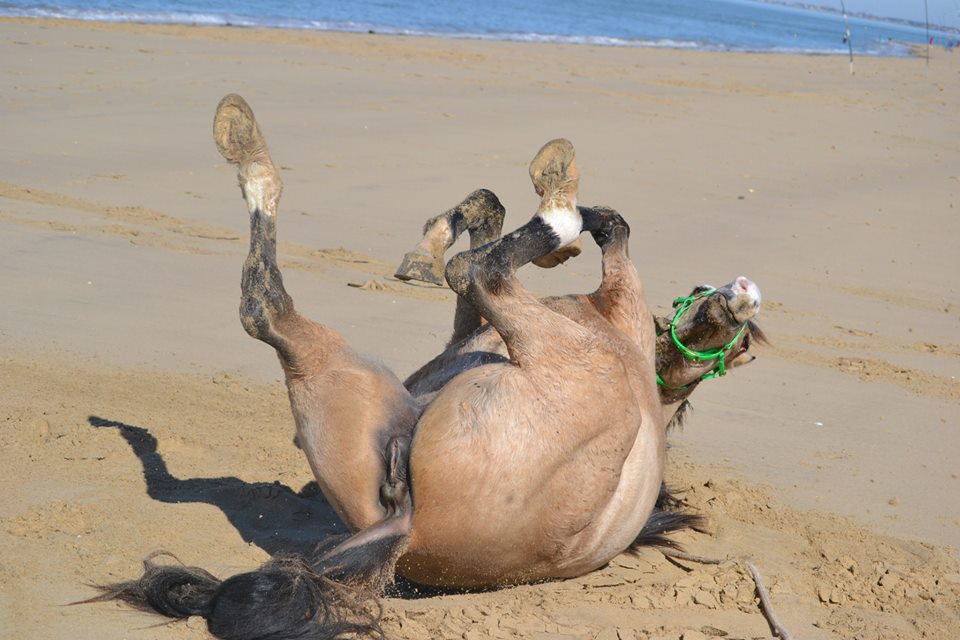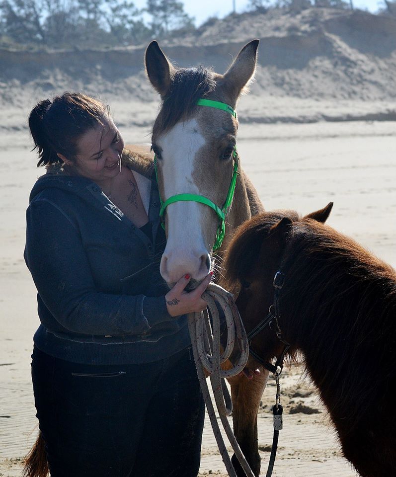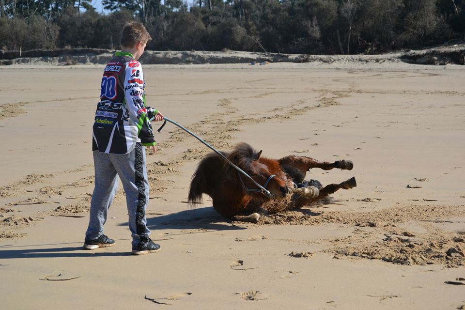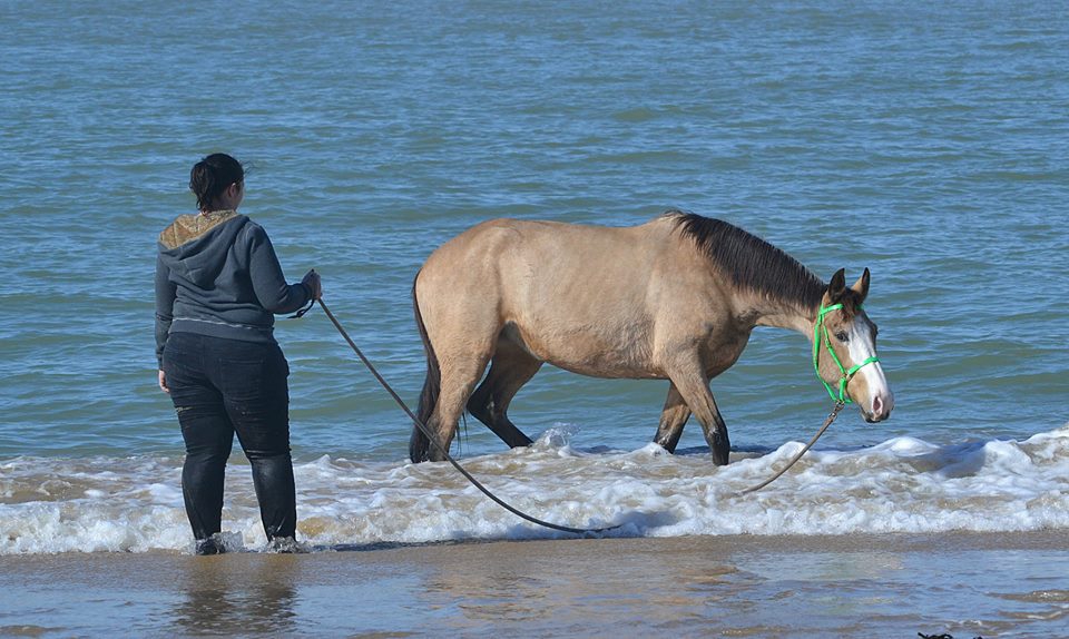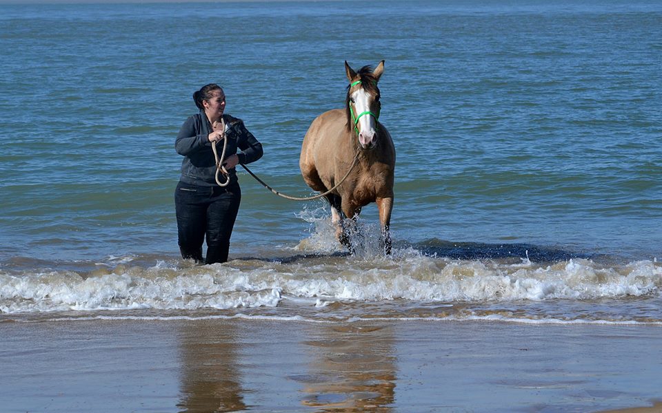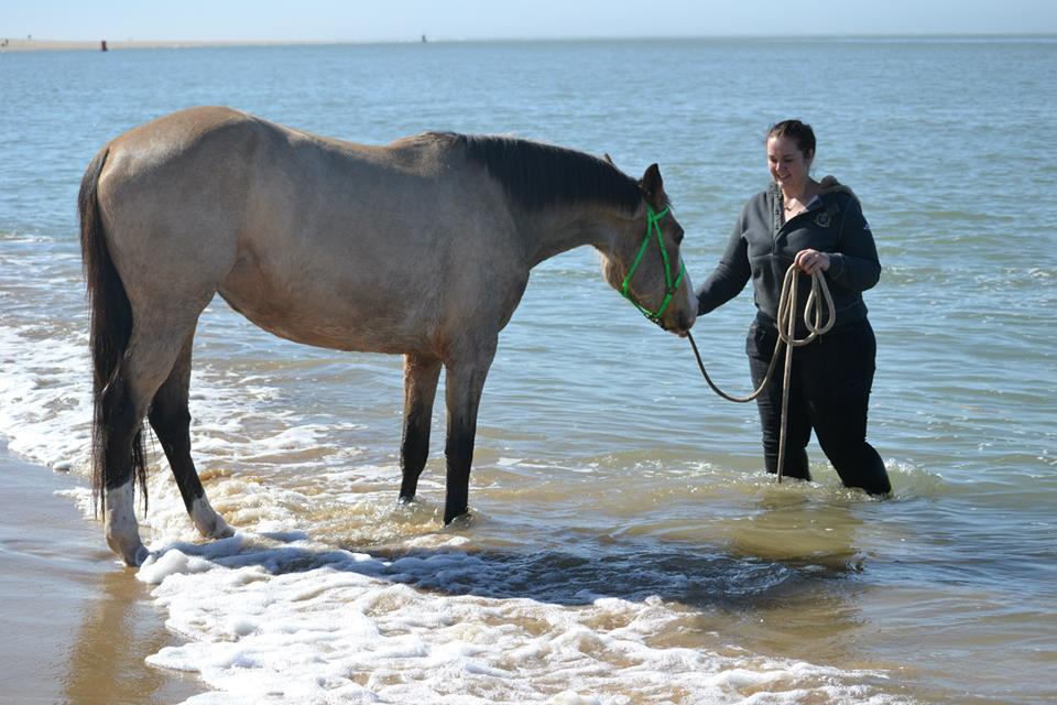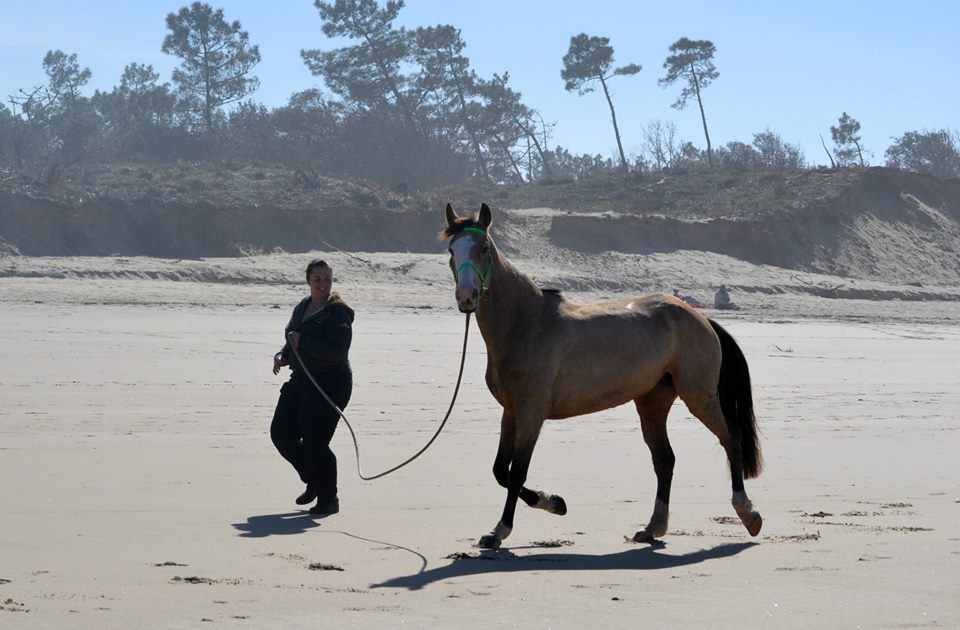 | Dire merci | Toi ça va tu les a vu sur FB ! et puis mon ordi est mort ..... du coup marsupylami , peux tu en mettre quelques unes s'il te plait ?? Sinon, non j'ai pas pu conduire, mon père n'a pas voulu Donc pour le résumé : 10h, je pars chercher les chevaux au champ, et les ramènes chez moi à pied ( 3km ), histoire de leur doucher les membres, et de les faires tous beau avant de partir !11h, des loulous qui montent très bien dans le van, et ZOU, le convois est en route, direction LA PLAAAAGE !! Arriver sur le parking vers midi, nous sommes rejoint par une amie et sa jument !! On attache les loulous aux arbres, première fois pour les 2 miens, et binnnnnn, aucune réaction, ils sont resté bien 1h accroché, sans bouger, bref ça annonce une bonne aprèm quoi en début d'ap, c'est parti, direction la plage, des loulous motivés, intrigué, mais vraiment très gérable, y'a du monde pas mal de passage, mais aucuns soucis !!! L'entrée dans l'eau ce fait hésitante, mais la jument de ma pote étant plus habitué, ça nous à pas mal aidé !! Suite à ça, Babydoll à totalement kiffé l'eau, et rentrée tranquille pour aller barboter Ce fut une journée absolument GENIAL, qui m'a prouvé a quel point ma jument est extraordinaire, et Pin's aussi d'ailleurs !! C'était la première, mais certainement pas la dernière !! voilà voilà |