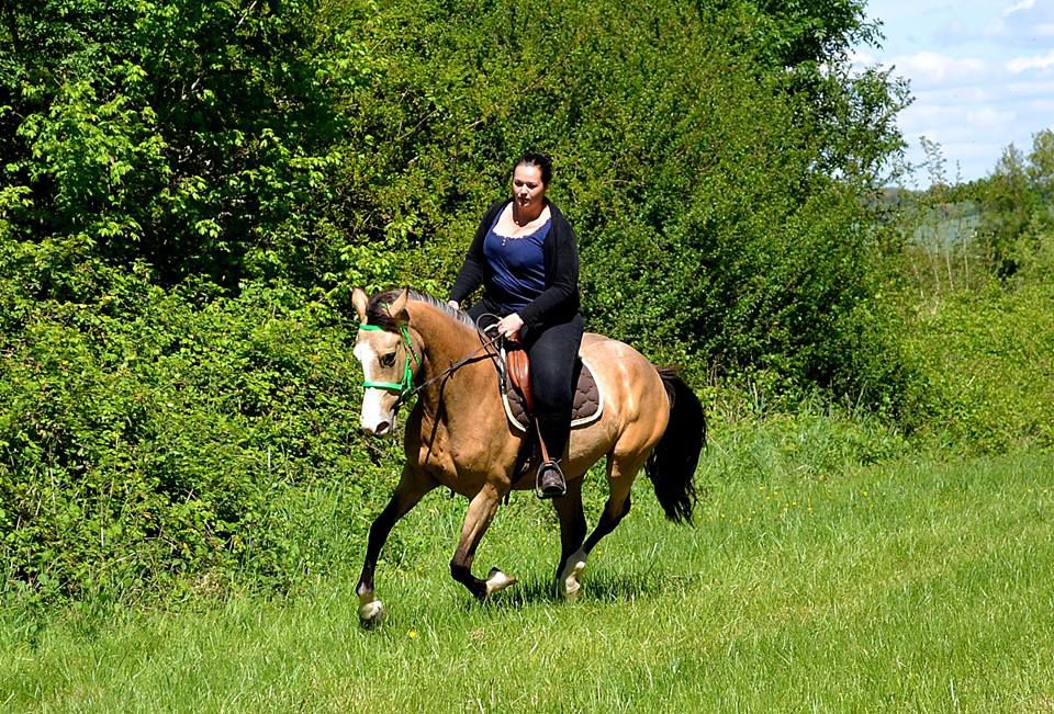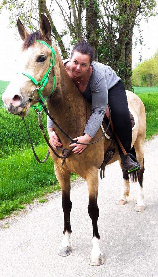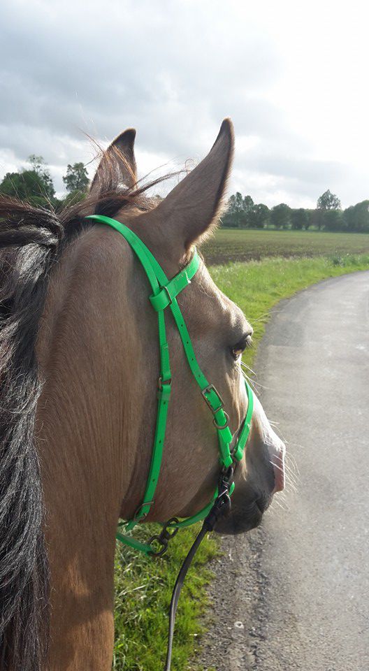 | Dire merci | et puis quelques nouvelles de la principal concerné quand même !!! ^^ Donc y'a 2 semaines, j'ai changé les doudous de champs, ils sont passé a l'herbe, et ça leurs a fait le plus grand bien !!! Je sors de plus en plus en extérieur avec Babydoll, car on prépare doucement, mais surement l'endurance que l'on fera ( accompagné de marsupylami et son crapaud ), le 2 aout !!! La louloute ce comporte à merveille, et ADORE l'extérieur !! Depuis quelques temps, doudoune ne supporte pas très bien le mors ( vu par mon véto/dentiste y'a 2 mois ), j'ai donc décider de la passer en Side pull !! je viens d'en commander un en Biothane vert et marron, j'ai hâte de le recevoir !! Pour le Poy, tous va bien, il nous suit dans nos aventure avec grand plaisir !! Il m'a fait tourner en bourrique pendant une semaine, à sortir du champ tous les jours .... je lui ai donc mit des antennes en fil de fer, et depuis plus aucun soucis ![]() |