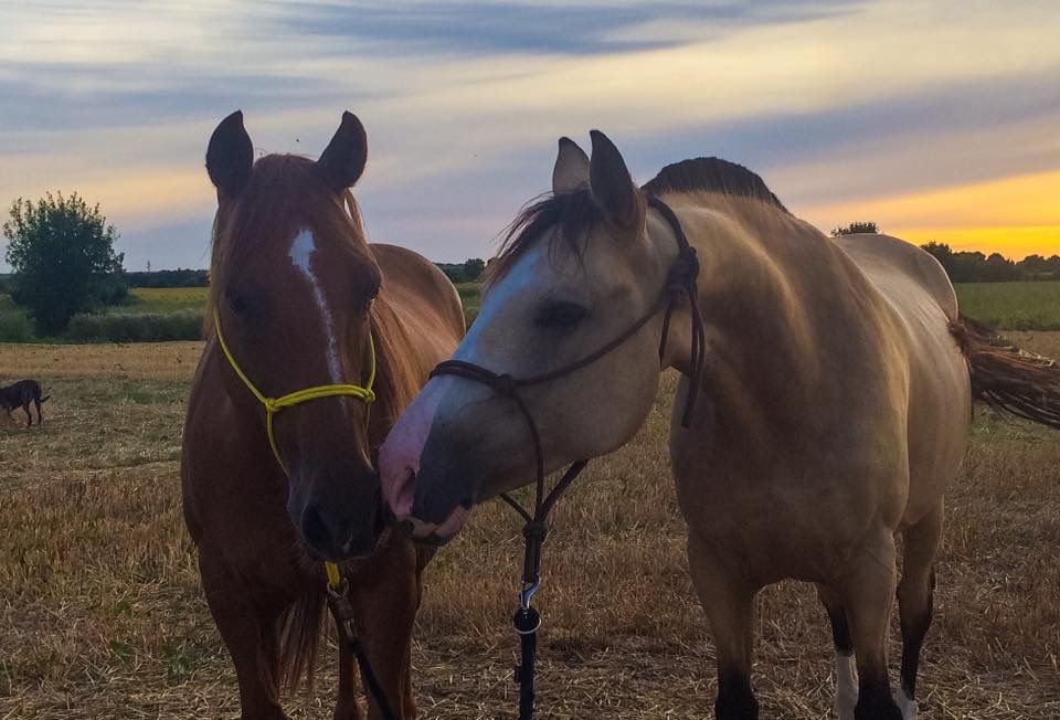 | Dire merci | La grosse Babydoll a enfin repris un peu le boulot ![]() On recommence par une petite longe tranquille, juste 20min histoire de voir si elle n'a rien oubliée !! Bin oui ça fait depuis cet hiver qu'elle n'en a pas fait !! Pensant qu'elle allait être hystérique, j'ai vite changée d'avis !! Une Doune qui ce met au boulot tout de suite, dans un petit trot tranquille ( alors que dans l'hiver c'était plutôt le contraire ) et qui en plus, me sors des extensions d'encolure qu'elle tien sur un tour entier ![]() Bref en résumé je suis SUPER FIÈRE d'elle Suite à ça, petite ballade de 5km a cru et en licol |