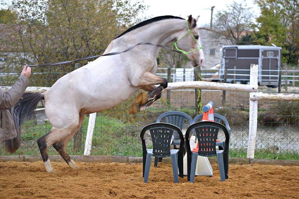 | Dire merci | elle me fatigue cette chienne Merci pour BD Pour Rumba, c'est le mélange improbable entre de l'espagnol et du Pur Sang .... heureusement pour elle, je dirais qu'elle à prit, niveau morpho, le bon côté des deux parents !! Côté mental, c'est une jument qui n'a pas vraiment eu beaucoup de chance, née dans un club, mais n'étant pas faite pour cela, elle restera enfermé 8 ans en box, après un débourrage qui, je l'imagine, fut fait, à la va vite ... Mais le tempérament déjà pas simple d'un pur sang, et en plus croisé avec d l'espagnol, on peut imaginer que la jument les a du coup, renvoyé chier .... Y'a deux ans, ma pote l'achète ( perso jamais je l'aurais fait ), c'était un coup de coeur, après avoir bosser un peu de la club où la jument ce trouvée !! La louloute débarque dans un pension, vraiment pas terrible, et moi je découvre la jument pour la première fois ...... mon verdict ?? Jument complétement flipper de tout, et même dangereuse .... Bref 6 mois passe, et ma pote prend ENFIN conscience que les conditions de vie dans cette pensions, ne sont pas bonnes !! On ramène alors la jument chez son père, la jument ce pose enfin un peu, même quand même très spéciale, avec des réactions vraiment pas cool .... On sortira en endurance une fois dans l'été, mais avec un retour, ou là jument ne voudra JAMAIS remonter dans le van pour rentrer à la maison, après 4h à avoir tout essayer !! elle rentrera le lendemain quand même chez elle ! L'hiver arrive, ma pote remet ça jument dans une nouvelle pension pour l'hiver !! encore une fois ne sera pas un très bon choix, et lui vaudra pas mal d'accident .... A ce moment là, je coupe les ponts avec elle, car je ne comprend pas ses choix .... J'apprendrais plus tard qu'elle changera encore de pension, ou cette fois elle semble avoir compris, que le mieux pour sa jument était de vivre dehors !! Puis via FB, je vois que, la jument ne change pas tellement niveau comportement ... nous sommes alors a ce moment là, en aout de cette année !! Je reprends donc contacte avec elle, pour essayé de lui faire comprendre que désormais, il fallait vraiment trouver quelqu'un qui saurait remettre sa jument dans le droit chemin !! Je lui parle alors d'un ami, d'une amie, installé dans le coin depuis 5 ans, avec comme méthode de boulot, l'éthologie ... Premier contact prit, nous emmènerons la jument pour un cours avec lui !! et ce fut LA révélation !! Rendez-vous pris pour une semaine de stage intensif pour la jument ET la cavalière fin septembre ! Bref je ne saurais comment expliquer tous ce qui c'est passé pendant cette semaine, mais la jument est aujourd'hui métamorphoser !! voilà voilà, pour l'histoire de cette belette, qui malgré tout, méritait bien qu'on s'occupe d'elle !! |