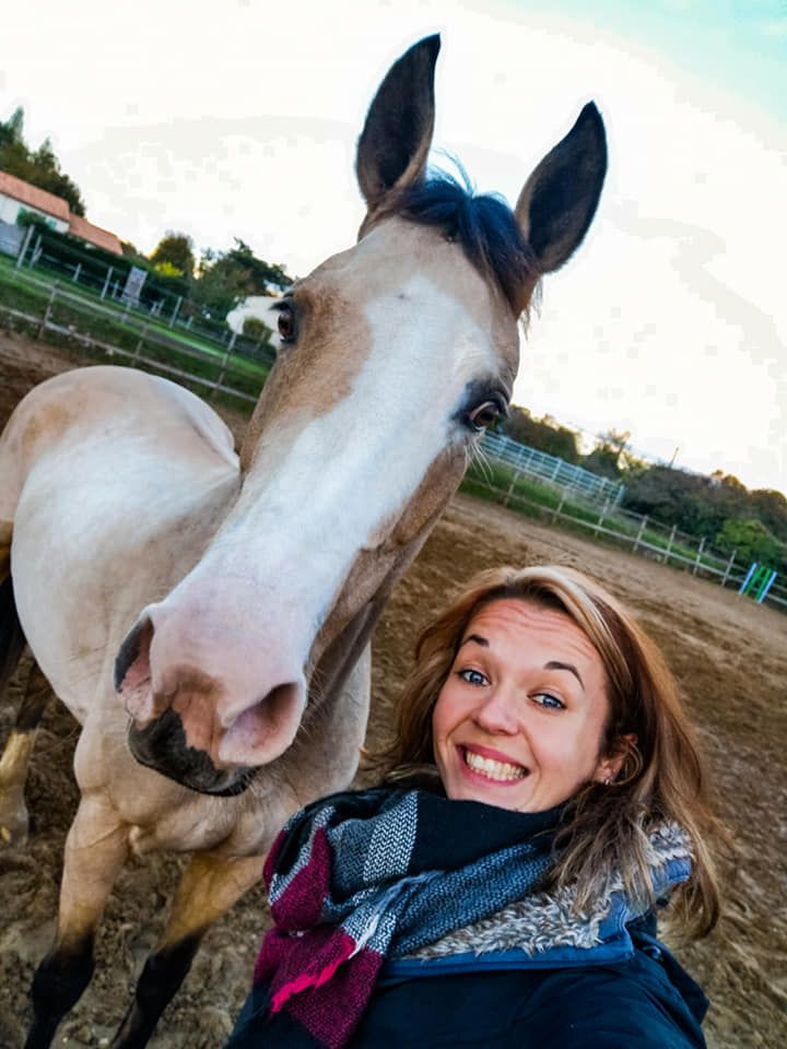 | Dire merci | Petite photo de notre séance d'aujourd'hui ! On reprend la travail en carrière en vu d'un Cso le 25 novembre ^^ Après une petite longe, 10 minutes de rênes allemandes pour remettre quelques trucs en place, et puis on enlève et on test ce que l'on vient de travailler pour voir ce qui est acquis ! On finie la séance sur du 3 allures, et SURTOUT, un galop cadencé et calme, et ça, c'est juste un pur kiff car c'est rare |