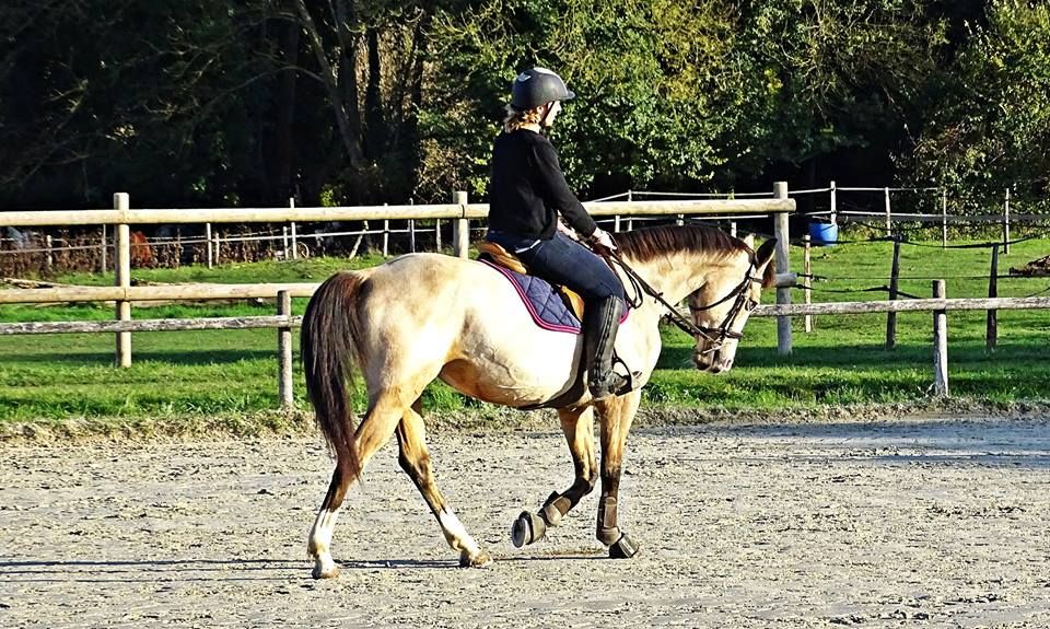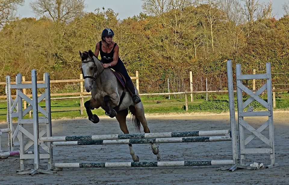 | Dire merci | même si ça n’intéresse pas grand monde, je continus mon monologue Comme vous le savez ou non d'ailleurs, Doune et moi serons en concours à Mazeray pour une club 2, dimanche 25 novembre !! J'ai donc pris la décision de reprendre des cours, afin de ne pas y aller à la rache, et faire un tour, pour faire un tour quoi ... donc se fut chose faite cet après-midi 😃😃 Je dois avouer que j'ai un peu ..... BEAUCOUP stressée en fait ... Pourquoi me direz-vous ? bin tous simplement car c'était notre premier cours avec quelqu'un qui ne connaissait pas notre couple ... Bref, on se fou un coup de pied au cul, et on y va, NON MAIS OH 😂😂 On attelle le van, fait monter la Doune, et hop on part à l'aventure. Enfin pas trop loin, car après 30min de route nous voilà rendu au club. 15h30, ZOU en selle mamie et c'est parti mon kiki !!! Début de séance, je fais comme d'habitude, et Meryl cerne nos points faible et on commence le boulot ! Les points qui en ressortirons seront : raccourcir mes rênes, avancer mon bassin afin de me redresser, encadrer les épaules de Doune car elle cherche à fuir, et lui mettre un collier de chasse avec martingale pour éviter la fuite du contact en levant la tête. Bref pas mal de chose en soit, mais vraiment une grosse amélioration du début à la fin de séance. Suite à toutes ces analyses, on va enchaîner un petit parcours, avec pour objectif, la maîtrise de l'allure avant, après et entre les obstacles. Étonnamment, on se cale plutôt rapidement au galop, alors que c'était LE TRUC qui me faisait flipper ... Premier tour plutôt pas mal, avec un petit moment de panique de ma part avant la ligne, mais rien de bien méchant. On monte un peu les barres, et hop deuxième tours, c'est mieux, j'ai la direction, les freins, et la cadence, du coup, on laisse là dessus 😍😍😍 Vous verrez que Doune met un point d'honneur à ne pas toucher hein, on sait jamais 😂😂 Je suis super contente de la séance, très rassurante pour moi, donc on est reparti pour un tour 😍😍 Un très grand merci à Meryl pour ce chouette cours, et à Nathalie pour toutes ces photos <3 <3 |