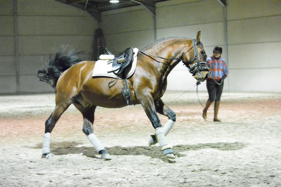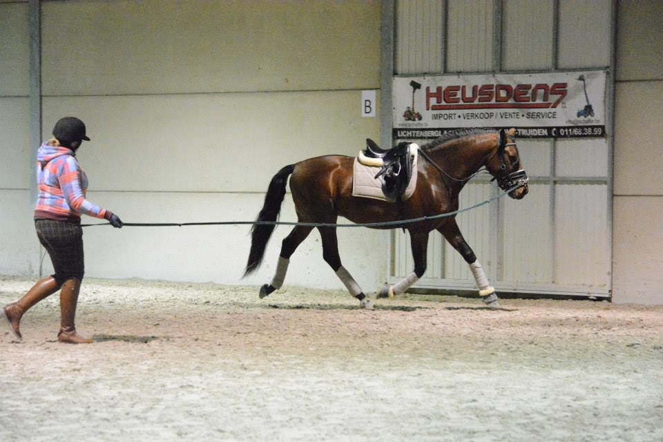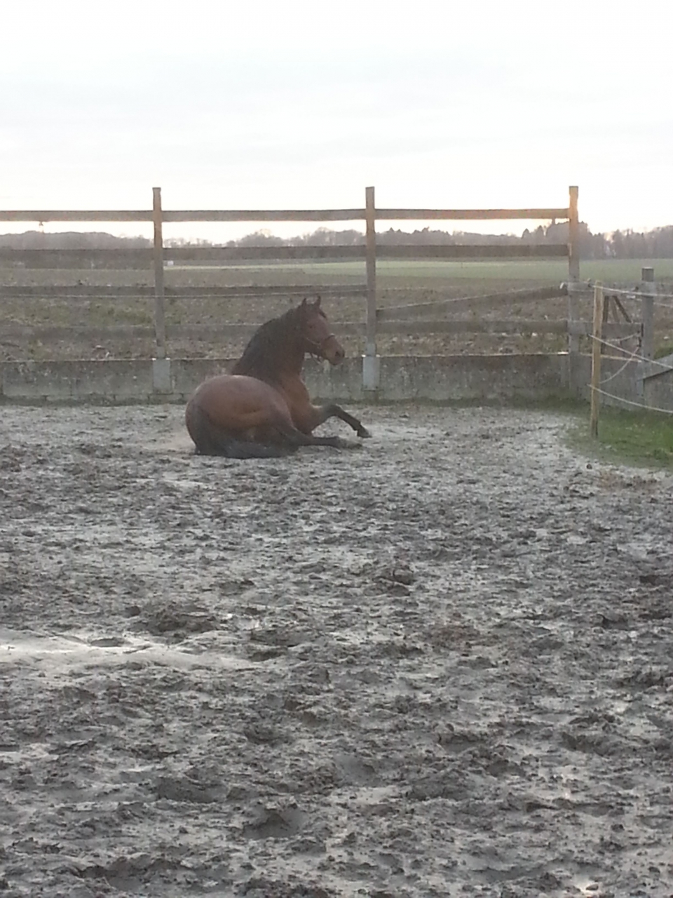 Doucement mais surement on prend nos marques, Ocioso est un cheval très doux, très câlin et très très posé surtout pour un cheval de 3 ans !! Il supporte sans broncher qu’on le prépare au box, d’être longé avec d’autres chevaux et est en recherche continue de contact avec les autres. De grosses séances gratouilles avec son pote Kaliber Cen (entier aussi d’ailleurs) et des bonjour à tous ses potes de l’allée… Les 3 étalons des écuries (tous les trois de chez Centurion) ont redonné confiance envers les étalons au propriétaire des écuries qui n’avait connu que des chevaux d’obstacles très peu sympathique, ceux-ci comparativement sont charmants. Si monté il a encore du mal lorsque plusieurs chevaux sont dans la piste et surtout quand on le frôle, le reste se passe très bien. Bref j’en suis déjà gaga de ce loulou…