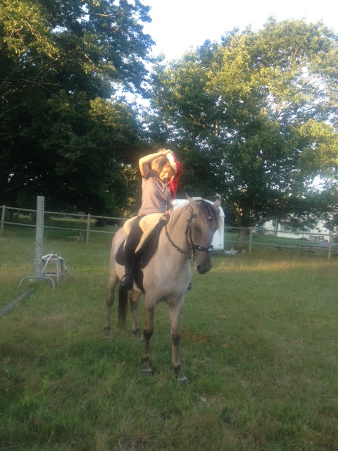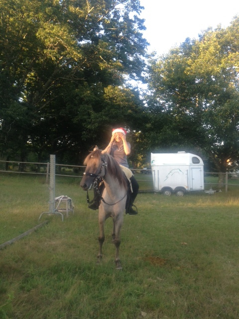 | Dire merci | Dové continue à travailler, il fait des progrès ![]() ![]() A chaque fois, on lui trouve un nouveau défi, j'avais vu sur une QL que le cavalier devait attraper une perruque et la mettre sur sa tête. Je n'avais pas de perruque, alors en plein mois de juillet, par plus de 30°C, le pauvre s'est retrouvé avec ce joli chapeau! (j'adore son air blasé )![]() Bon, c'était pas tout ça, mais le but c'était que le chapeau soit mis par la cavalière... A une main, pas facile de mettre un bonnet de père noyel ![]() ![]() De toutes façons, il bouge pas, alors zou, on lâche tout et on met le bonnet! ![]() Pour terminer la séance, il a fait sa première sortie en extérieur, impeccable! ![]() Oui, oui, je sais, la selle a encore avancé, mais bon, j'ai pas les sous pour lui acheter une selle pour lui, il va faire avec, tant pis |