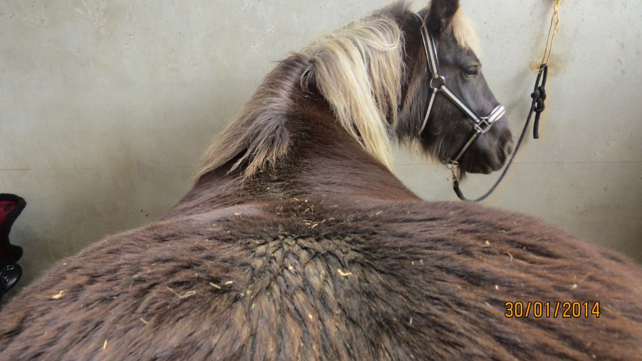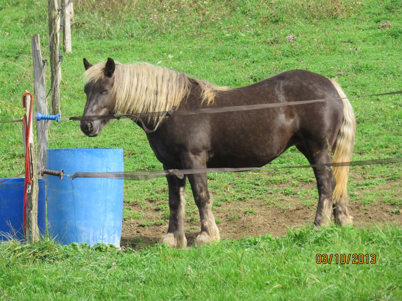 | Dire merci | Bonjour Je viens vous présenter Sarah ( anciennement Unique et Ulrike ) jument haflinger x comtois, 5 ans. Je l'ai depuis début octobre de cette année. Elle toise environ 1,43 m, a déjà eu un poulain, je pense qu'elle va encore grandir car actuellement sa croupe est plus haute que le garrot. Comme tout cheval ou poney de son gabarit je galère pour lui trouver une selle qui lui va mais qui me va aussi. Elles tournent toutes même celle pour cheval de trait. Message édité le 19/11/13 à 20:01 Message édité le 04/06/14 à 20:48 Message édité le 06/05/15 à 15:51 |