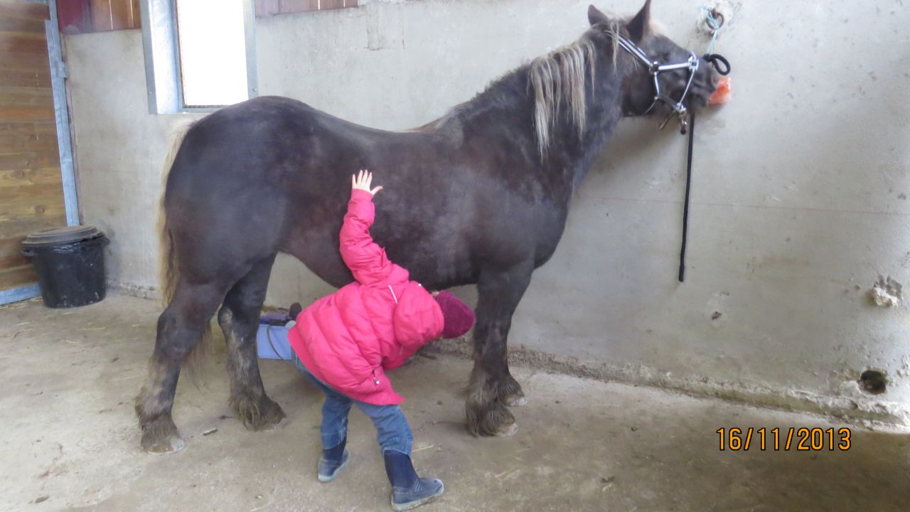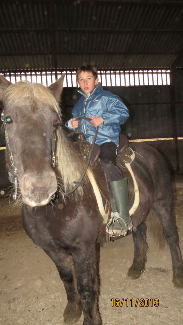 | Dire merci | photos avec ma fille, j'ai 4 enfants et c'est tout juste s'ils ne se battaient pas pour la brosser. Elle a fait deux colos équestre avec un de ses frères et ils adorent :![]() avec mon fils ainé qui est déjà monté à cheval il y a quelques années, il voulait que je le lache complètement mais étant donné que le manège était complètement ouvert pour mettre le sable je ne pouvais pas prendre ce risque : ![]() |