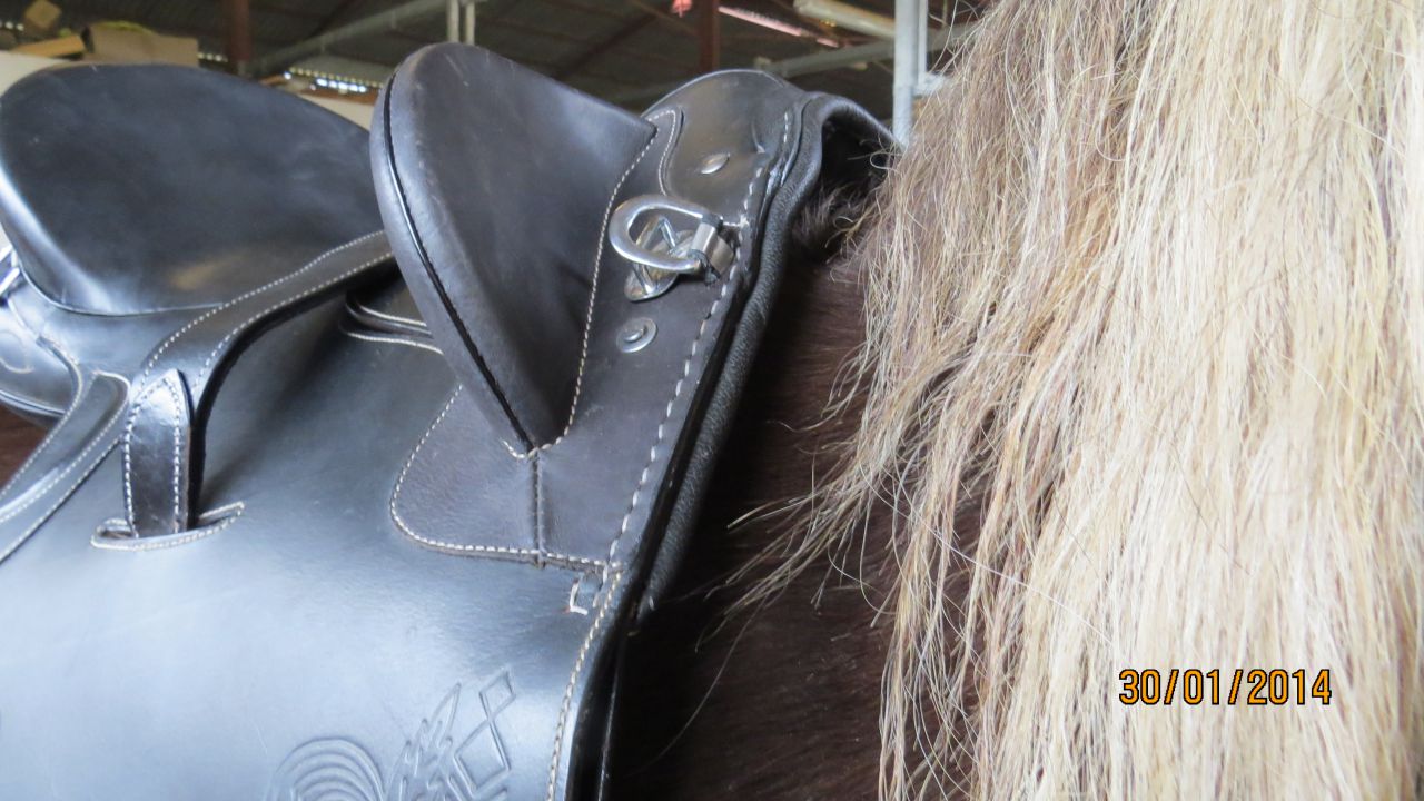| Dire merci | voici des nouvelles. En attendant de pouvoir commander l'australienne sans arçon et la portugaise ( délais de 6 semaines ) j'ai commandé celle-ci avec arçon large, ce n'est pas du haut de gamme mais elle fait l'affaire : son dos : ![]() la selle n'est pas sanglée : ![]() ![]() selle sanglée avec tapis et sangle cuir de veau avec élastiques ( sangle modifiée il y a 15 ans changement de boucles pour aller sur une autre australienne ) et j'ai oublié le fourreau de sangle en mouton synthétique mais pour un essayage ce n'est pas grave : ![]() ![]() ![]() il y a juste une chose qui m'agace plus que tout : J'EN AI MARRE DE LA GADOUE Message édité le 30/01/14 à 16:24 |