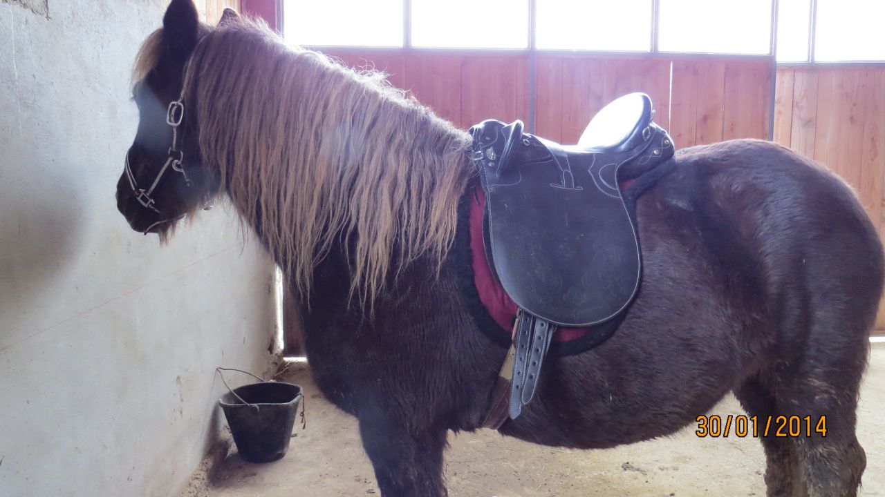 | Dire merci | Pour la selle je vais commander sur le site sorenta sattel. Ils fonts des selles sans arçon et sur mesure ( taille siège, couleur, ajout de matelassures amovibles ). J'ai une selle conçue de la même façon seulement il y a erreur de taille pour moi, sans cela elle est très bien adaptée à Sarah. A l'élevage la gérante a été agréablement surprise quand je lui ai dis qu''elle n'avait pas d'arçon. Avant de la mettre au pré j'ai attendu plus d'une demi heure dans l'écurie ( j'ai attendu le gérant pour la toiser), je ne suis jamais pressée de la ramener et sur le chemin elle cherche toujours à manger. Je mets plus de temps pour l'emmener que pour aller la chercher. En générale c'est une jument qui transpire vite. Quand à la bombe je l'avais oublié dans la sellerie et mon fils aîné ne l'avait pas trouvé quand je l'ai envoyé la chercher. Gérer 4 enfants d'âge rapprochés n'est pas évident quand on est seule ( 11 ans, 10 ans, 8 ans et bientôt 7 ans pour le dernier). |