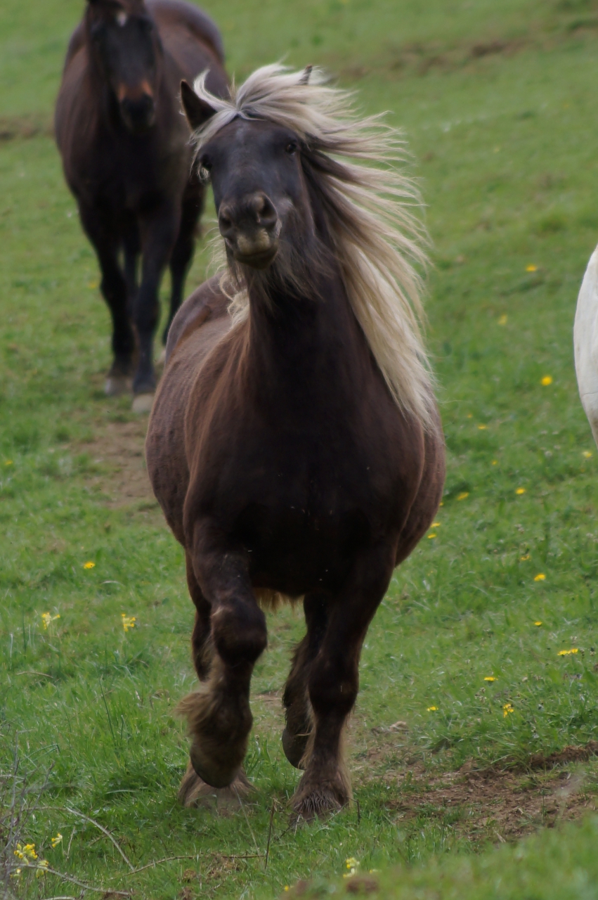 | Dire merci | Elle fait environ 1,43 m et peut encore grandir, Elle a actuellement la croupe plus haute que le garrot. Elle a eu un poulain, son ex proprio pensait qu'elle aurait un mulet car elle était avec un âne mais à la naissance elle a constaté qu'il y avait erreur sur le père. Pour l'instant nous nous découvrons, je la monte dans le manège. J'ai du mal à trouver une selle qui ne tourne pas. Je la monte avec une australienne. Elle vit au pré avec deux autres juments. Je l'ai trouvé près de chez moi fin septembre. C'est une jument très proche de l'homme mais qui a encore à apprendre surtout en extérieur. Ne craint pas les autres animaux. Elle n'a jamais été en club mais a plus travaillé en manège qu'à l'extérieur Elle est très réactive quand je la monte. Son principal défaut : difficile à lui mettre le mors ( je l'ai passé à un mors en caoutchouc pensant qu'elle réagirait moins mais cela ne change rien). Message édité le 01/08/14 à 14:11 |