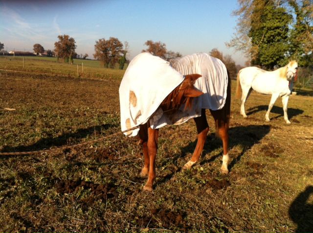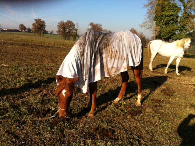 | Dire merci | ce matin ... soins de poulinou pour sa dermatophylose !! et couverture car pluie annoncée demain ...![]() |
