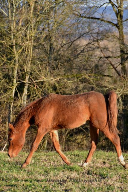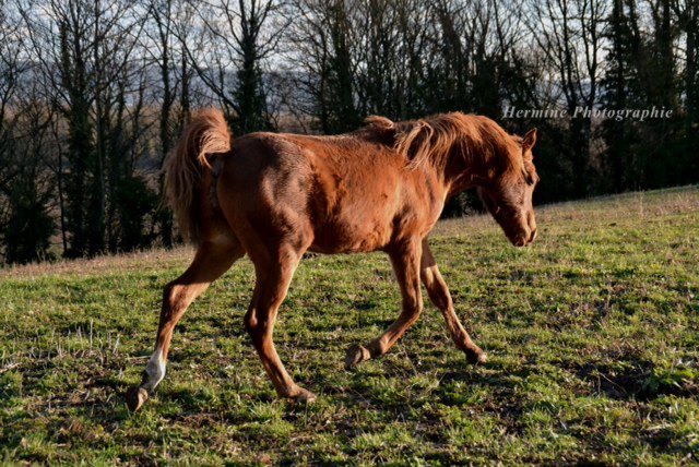 | Dire merci | Merci ! Dans l avenir je me vois en randonnée avec lui , il a un bon mental ! Ça mere a de très bonne origine endurance alors peut êtres... Après j aime l éthologie ... Donc de la liberté , peut être un peu de spectacle . J ai encore le temps , il n a que quinze mois ... Déjà il sort en balade en main 1 a 2 fois par semaine avec ma jument . J ai commencé d'éthologie ... Que j'ai bcq pratiqué avec ma jument arabe aussi ! |