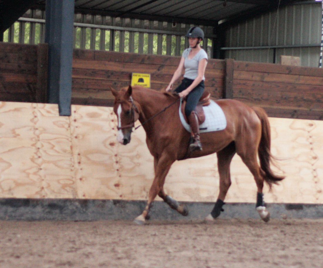 | Dire merci | and hui j'ai ramé un peu. bon 2 cercles au galop et j'étais .... asphyxiée. (génial). puis barres au sol. puis galop.. a droite il s'arrête... a gauche, euh..... n'importe quoi. d'abord 2 de tension, ok ok ... puis ca allait. je ressente droite, dur dur. j'hesite entre la feneantise et le mal être ... j'opte pour un entre 2 en me disant "non mais faut bosser un minimum ... alors on va bosser sérieusement mais gentillement !!! du coup ça fini avec un peu de sévérité (mains posées à la Colonel Carde) au pas et au trot pour poser le "cadre"et lui dire "stop la connerie on bosse !!! , puis gentils départs pas - galop (4-5 foulées) puis trot, pas et rebelote, c'était mieux. c'était même pas mal en fait. |