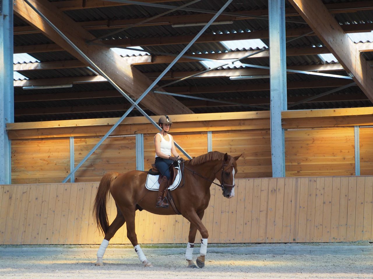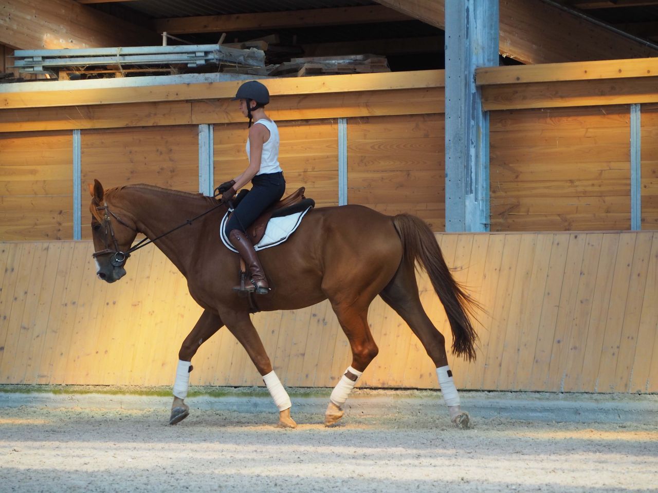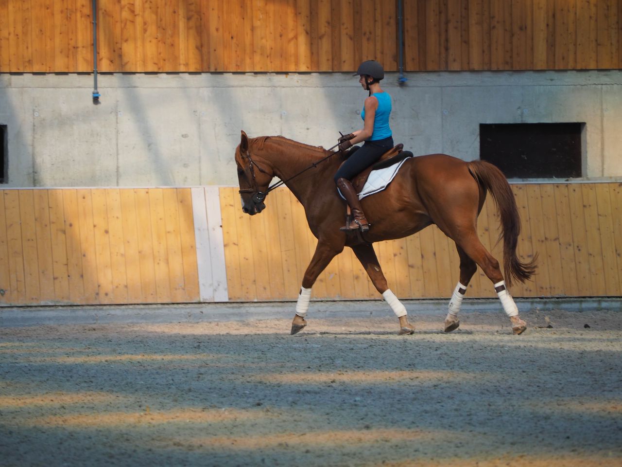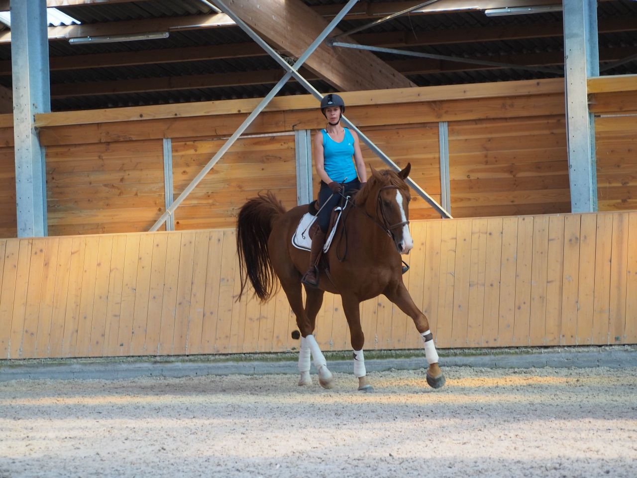 | Dire merci | Moi aussi je déteste monter quand il fait chaud...ca me fait tourner de l'œil Belles photos vraiment, il est beauuu ton jaune la, trop classe avec les belles bandes dans ce superbe manège ! |
