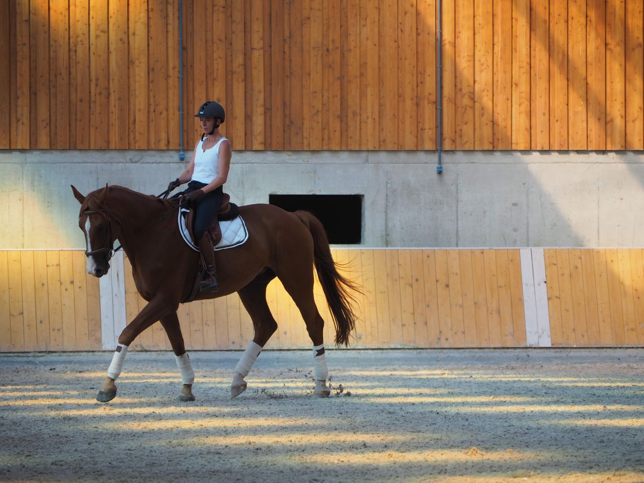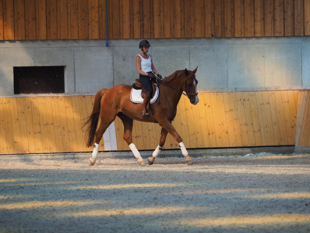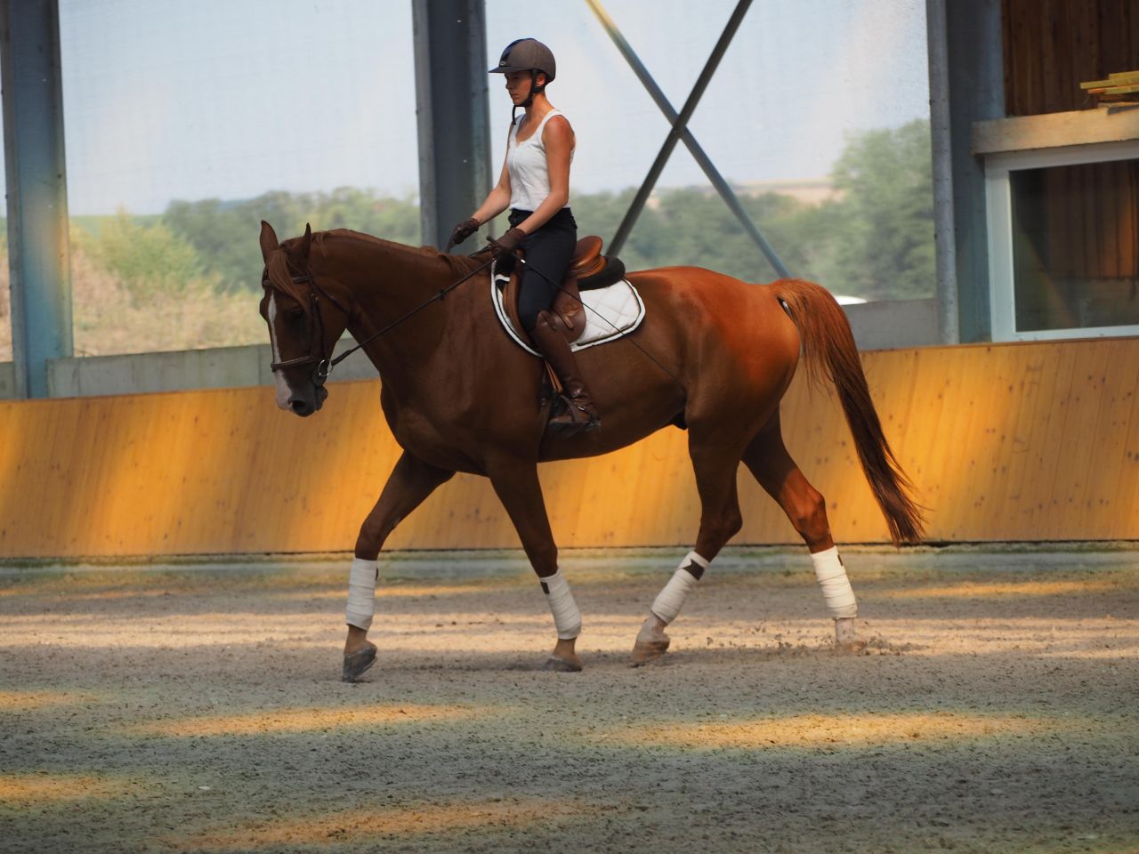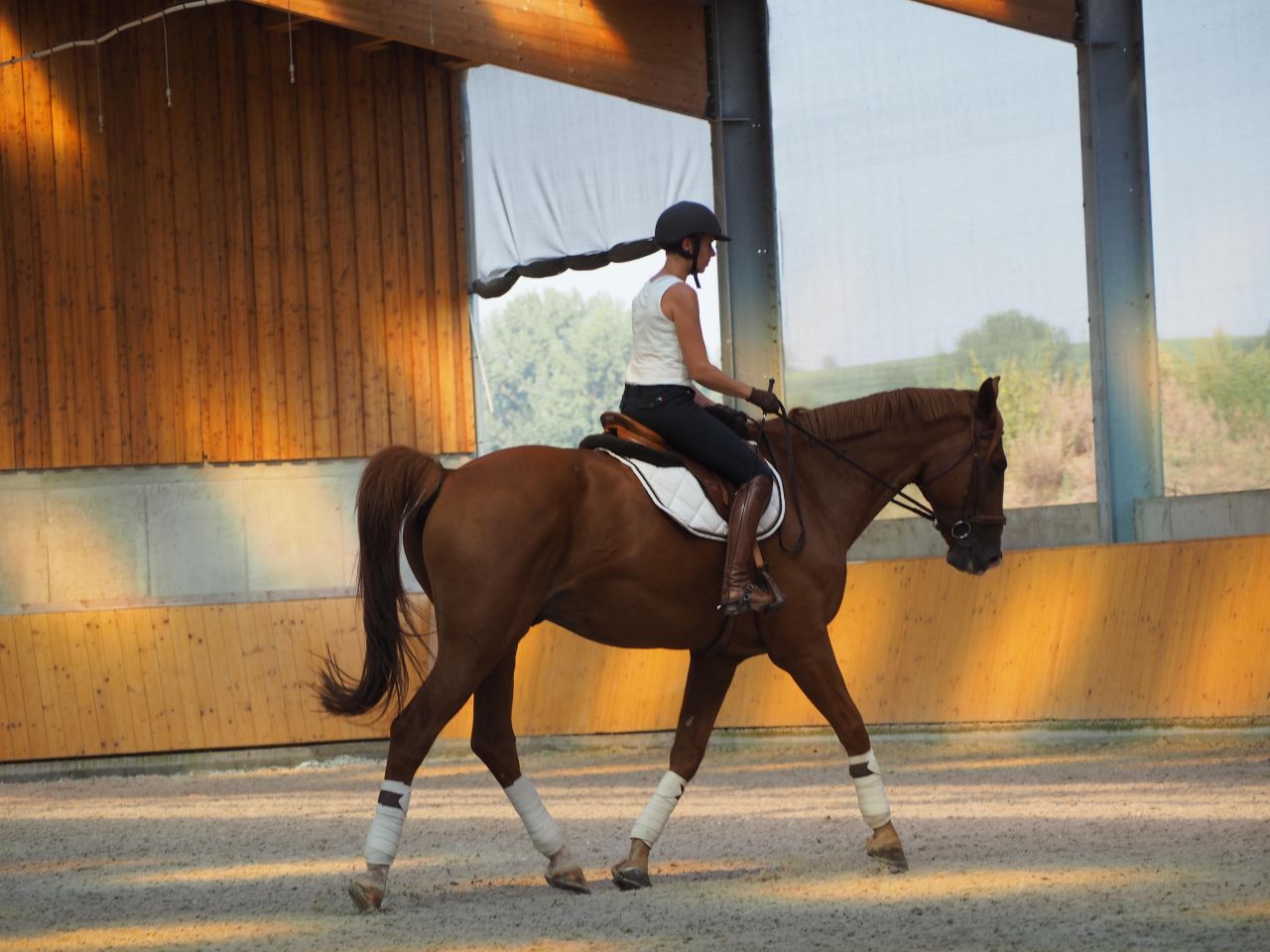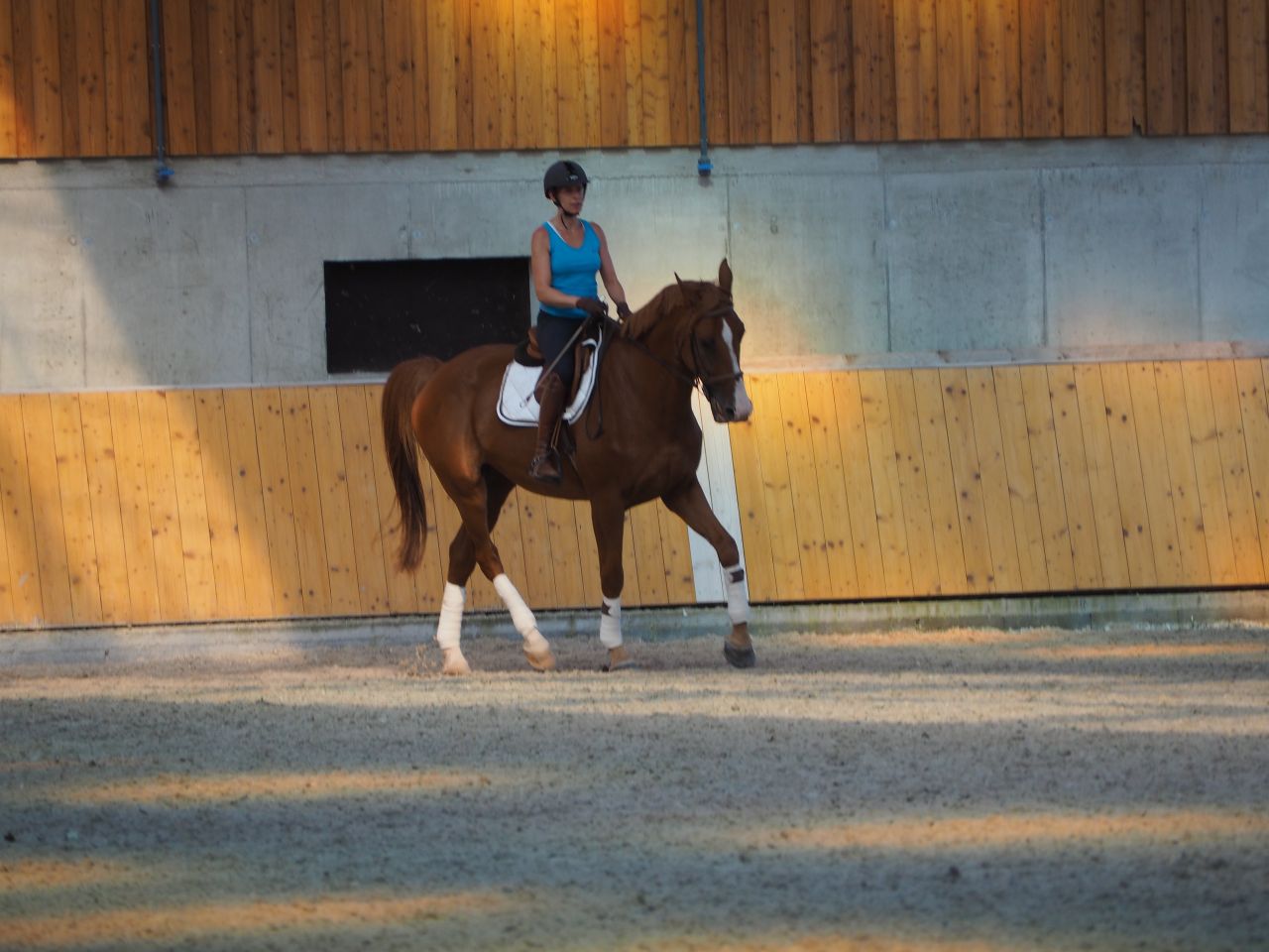 | Dire merci | Moi aussi je déteste monter quand il fait chaud...ca me fait tourner de l'œil Belles photos vraiment, il est beauuu ton jaune la, trop classe avec les belles bandes dans ce superbe manège ! |