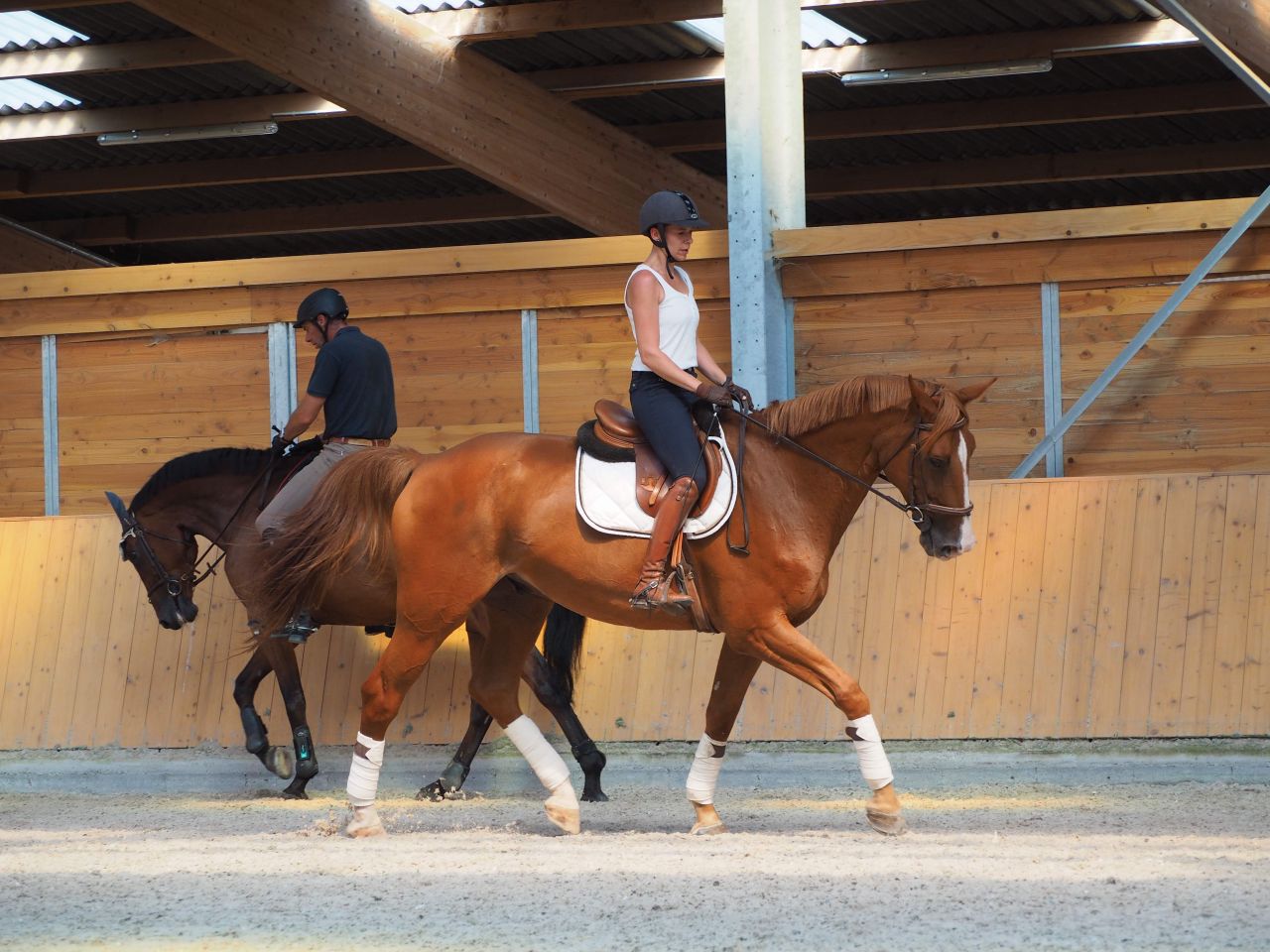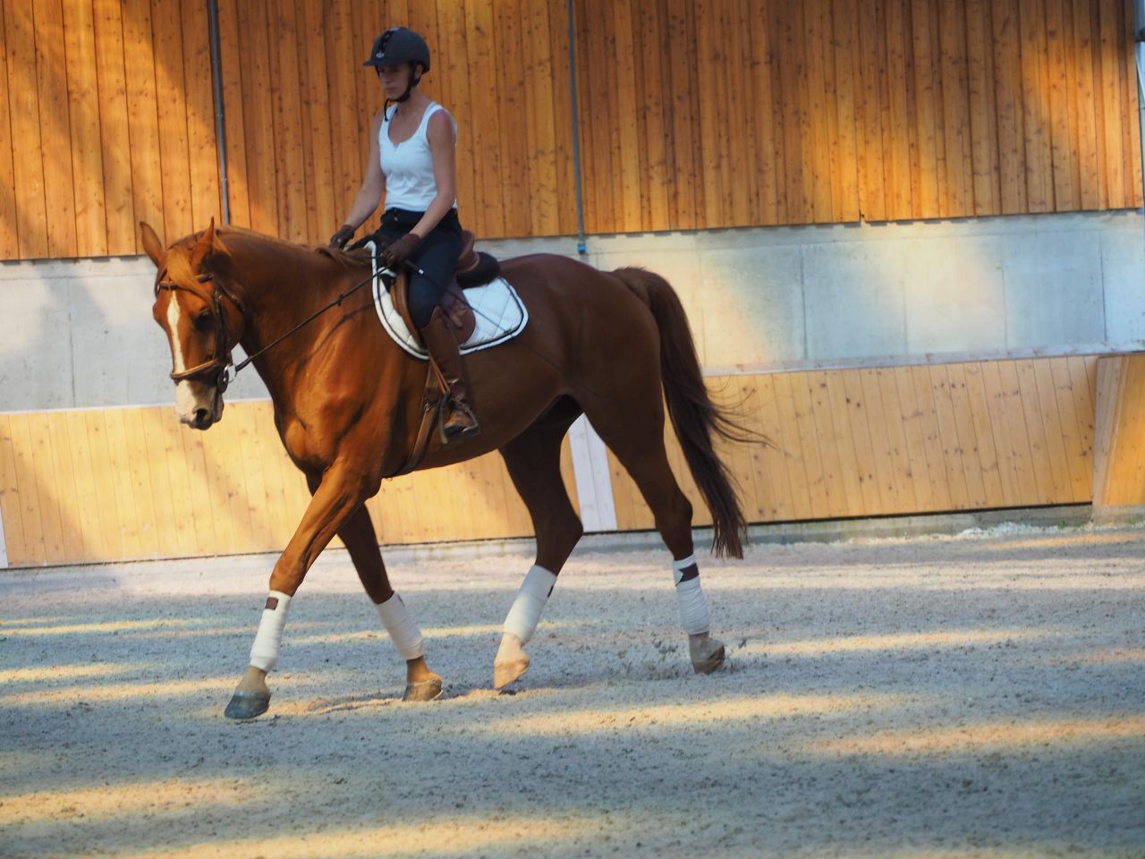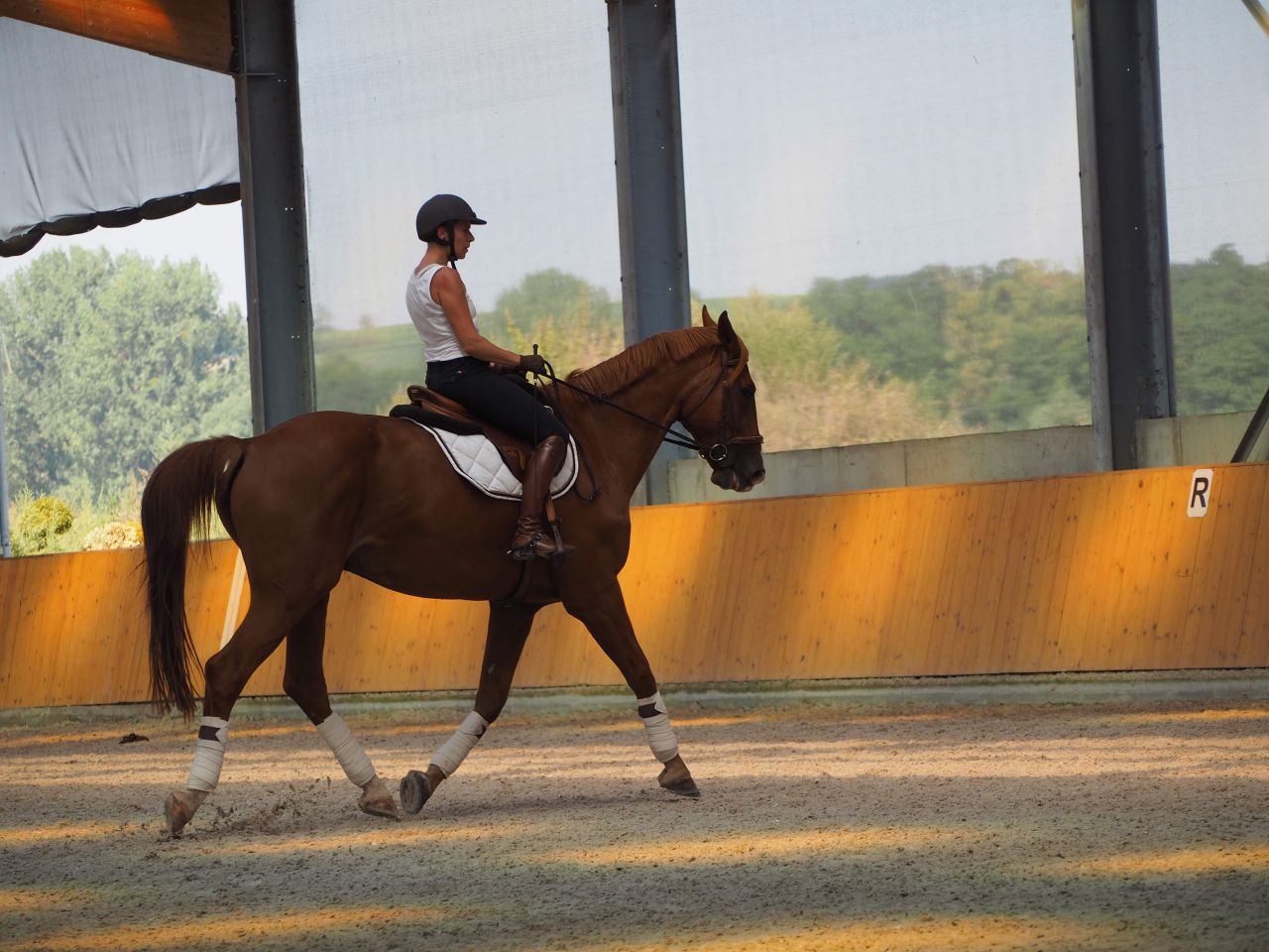 | Dire merci | Oui,laurebrrrrr j'ai réfléchis aussi. Au final (je vais poster dans l ordre en fait enfin j essaie car si je commence à t expliquer maintenant on va se perdre). Le 2eme jour j'ai été plus gourmande - mentalement plus incisive - sauf que au vu des photos il y a des erreurs qui ont fait que : plus rigoureuse dans ma tête (mais peut être plus pressée de bien faire aussi du coup = ERREUR l mais techniquement : rênes plus longues, qui pose soucis aussi, bon sur le 2eme matin y a pas de photos ou presque mais vous verrez. Et j essayais de forcer les genoux, ça m 'a couté dans mon confort habituel et mis dans le rouge, et j'ai négligé certains points. Alors que le premier jour l'attitude du cheval était plutôt bien, (je trouve quand même ! ) Je vais commencer par l'aprem quelques photos. |