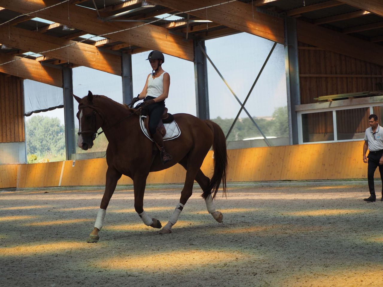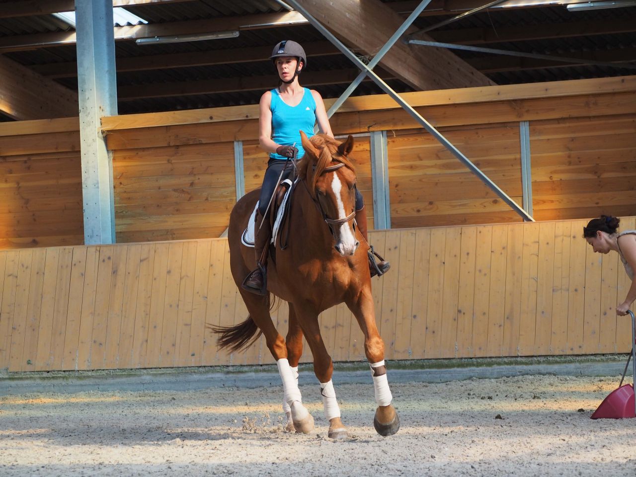 | Dire merci | Alors voilà, journée de boulot finie, il fait trop chaud donc en attendant d'aller revoir mon âne je poste un petit CR. t des photos et c'est là qu'on dit "merciiii camboui21 " Donc premier matin : ![]() ![]() COMPLIQUé. Il y avait un nouveau cavalier qui monte depuis 40 ans... et qui a acquis un nouveau cheval il y a un mois. Le cheval totalement fermé et encapuchonné à interrogé Boi**on, qui a pris beaucoup d'attention pour lui, du coup, nous on était un peu livrés à nous même. Donc comme il connaissait un peu mon cheval du premier stage et les autres de la veille.. benne on est un peu passés à la trappe (groupe de 4) Pour commencer ma détente, il me dit d'emblée que mon cheval n'est pas assez franchi. Qu'il faut pas forcément l'arrondir de suite mais d'abord qu'il se franchisse. Vraiment. Pourtant à la détente seule, j'avais pas forcément essayé de l 'arrondir, MAIS ça manque quand même de contact : ![]() Bon après des fois oui... je le "mettais rond". enfin sans forcer quand même ![]() J'ai l'air un peu dépitée, je craignais le stage en fait, j 'avais un peu la trouille ... Quand je suis concentrée on dirait que je veux tuer quelqu'un .. ![]() Puis le chef qui vient me causer. Et là, c'est parti. Les jambes : prendre le cheval par la cheville etc, que je sais déjà, qu'à priori je n'applique pas encore. Bon j'essayais déjà de me tenir, mais .. pas assez. Bon a commencé par détendre du coup sur des cercles en devant déplacer les épaules comme la fois précédente etc . Remarque de moi même sur l'ensemble : regard qui plonge, épaules trop recourbées, dos pas "ouvert" et pas assez tonique ... ![]() |