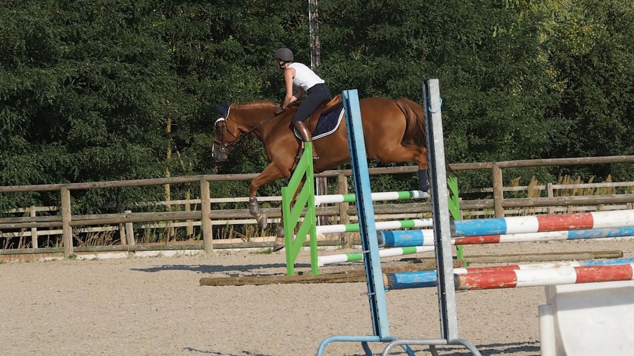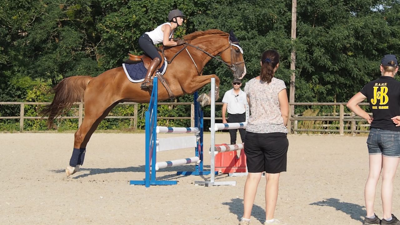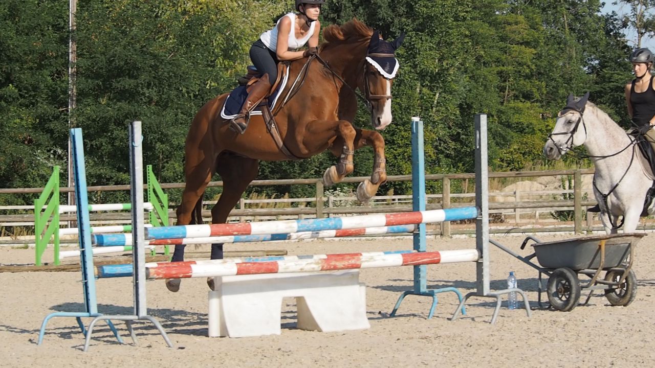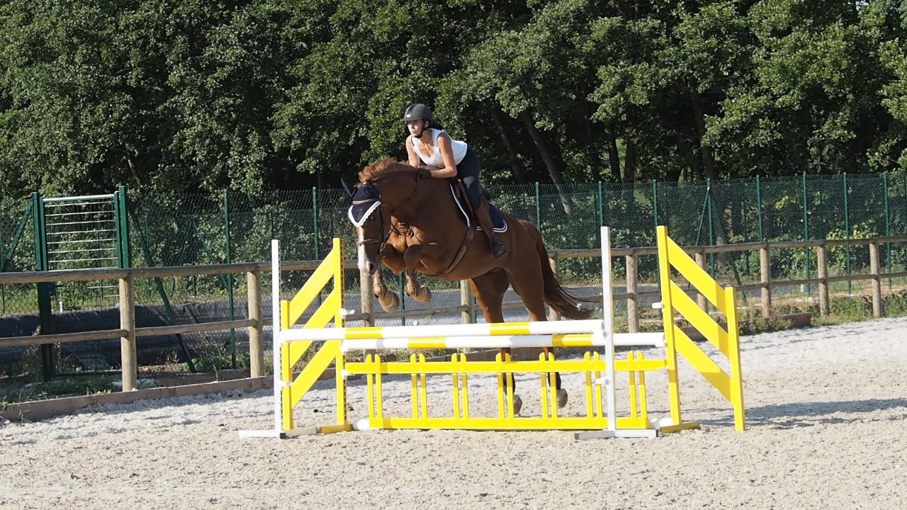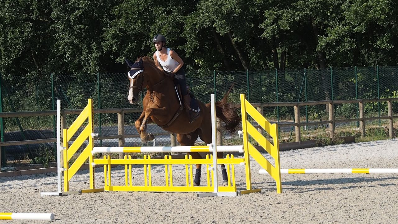 ![]() Du coup je galère un peu, mais au final je me formalise pas .... je crois que je suis en train de me dire déjà "putain on va se faire éjecter du stage, ca craint" et je perds du moral tout doucement .. ![]() Je fais ce qu'on me dit on continue, abord au trot ![]() Abord au trot ![]() Puis continuer au galop virage et on retourne sur le jaune cette fois, manque d'équilibre = saut plat : ![]() |