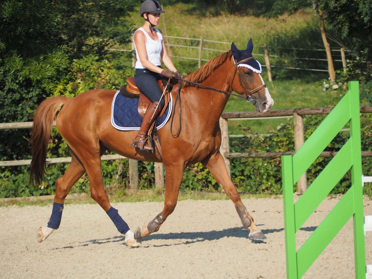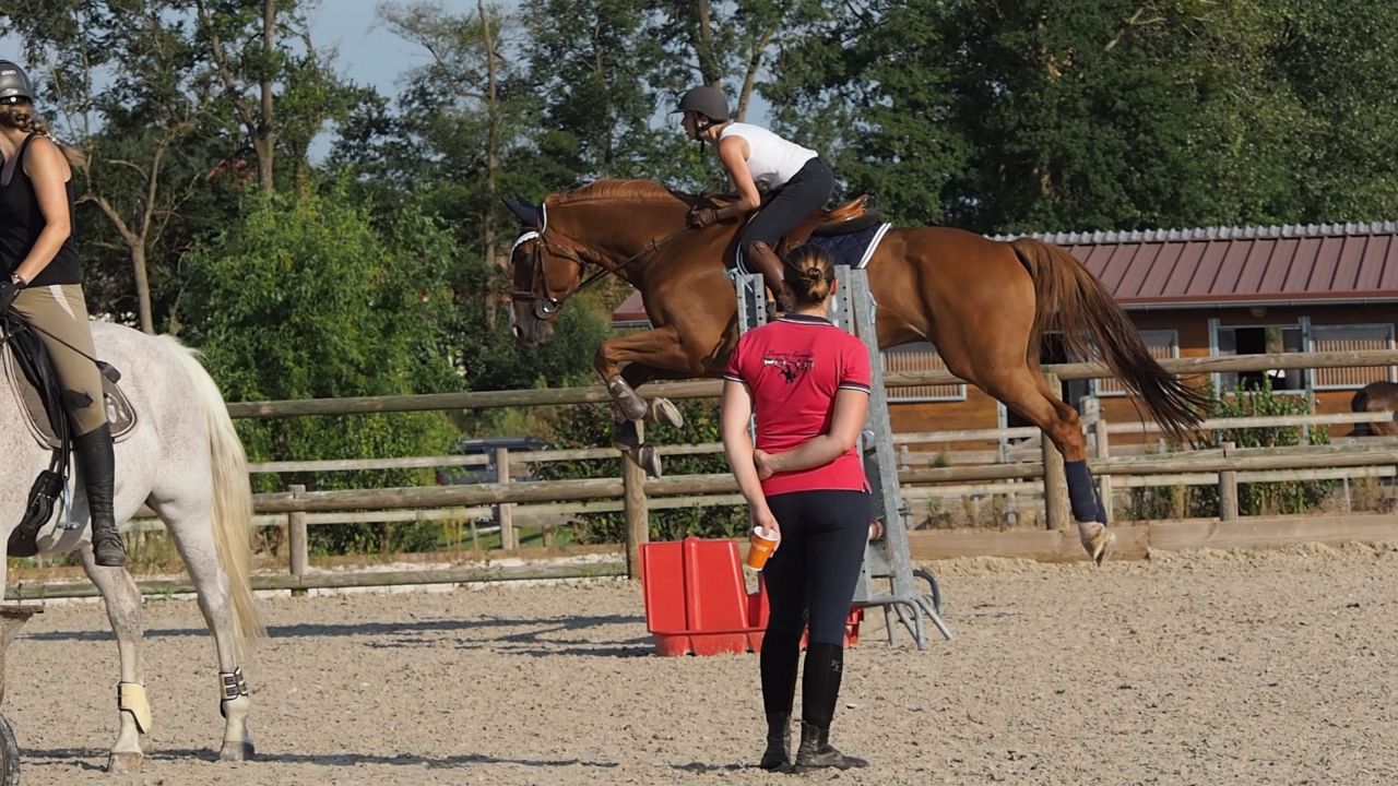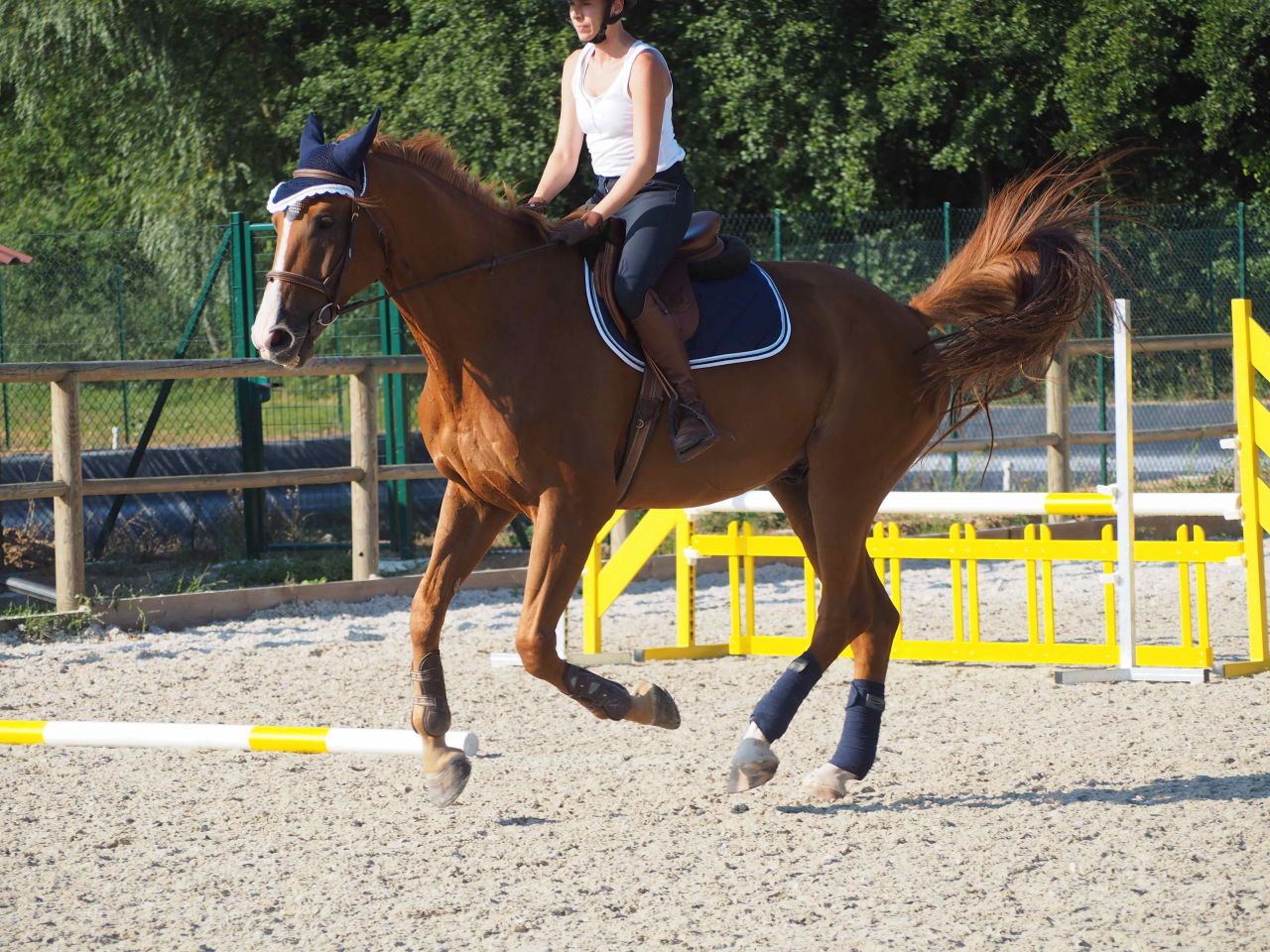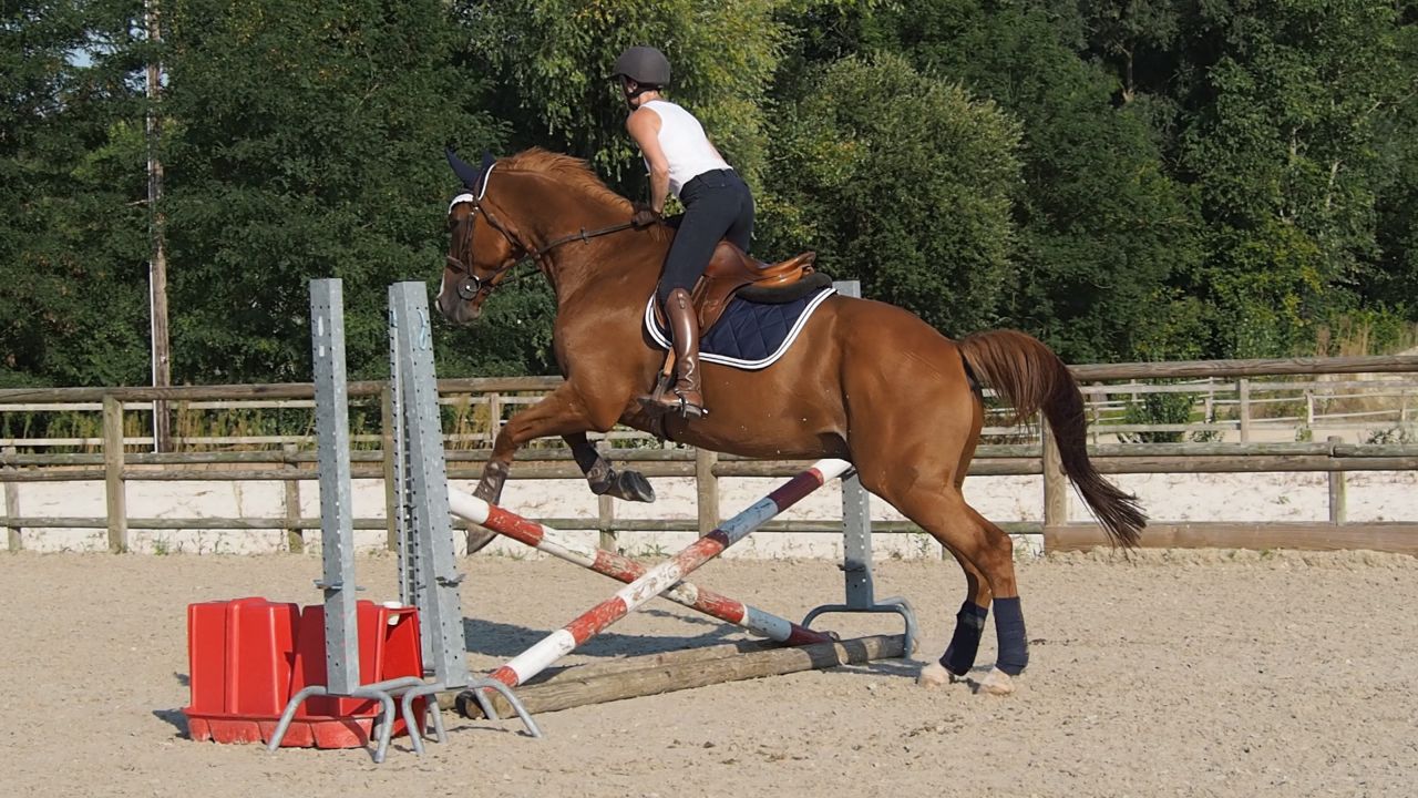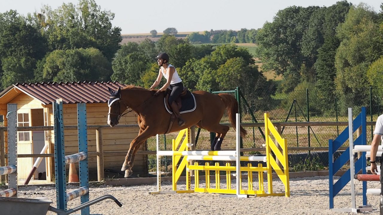 ![]() Du coup je galère un peu, mais au final je me formalise pas .... je crois que je suis en train de me dire déjà "putain on va se faire éjecter du stage, ca craint" et je perds du moral tout doucement .. ![]() Je fais ce qu'on me dit on continue, abord au trot ![]() Abord au trot ![]() Puis continuer au galop virage et on retourne sur le jaune cette fois, manque d'équilibre = saut plat : ![]() |