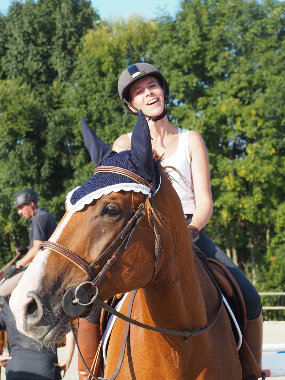 | Dire merci | Oui c'est clair Syre au final se fige sur le mors à la différence du coup c'est pas pareil en effet. Bon première matinée de stage.... Mitigée. Un nouveau cavalier. Beaucoup d'attention pour lui du coup me suis sentie un peu seule au monde. Mais bon on a discuté un peu en fin de séance Ca A apaisé le truc Je crains un peu l'obstacle quand même Il est encore moins tendre que la dernière fois !!!! |