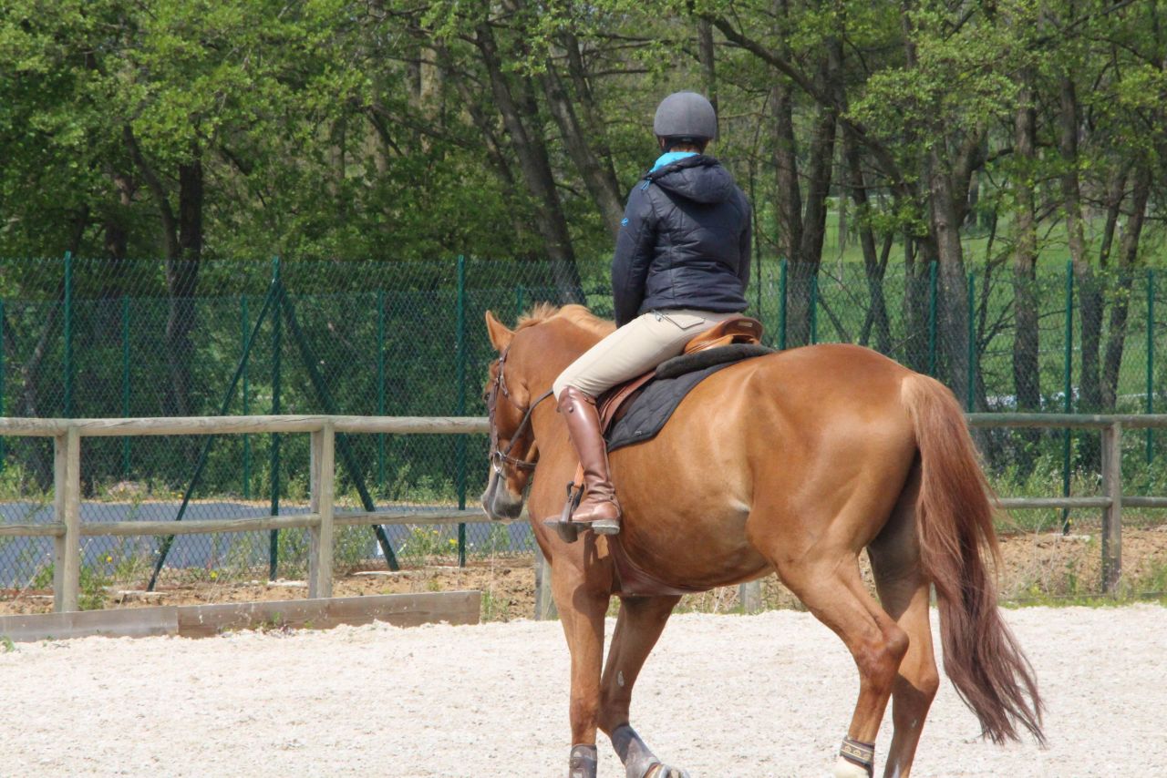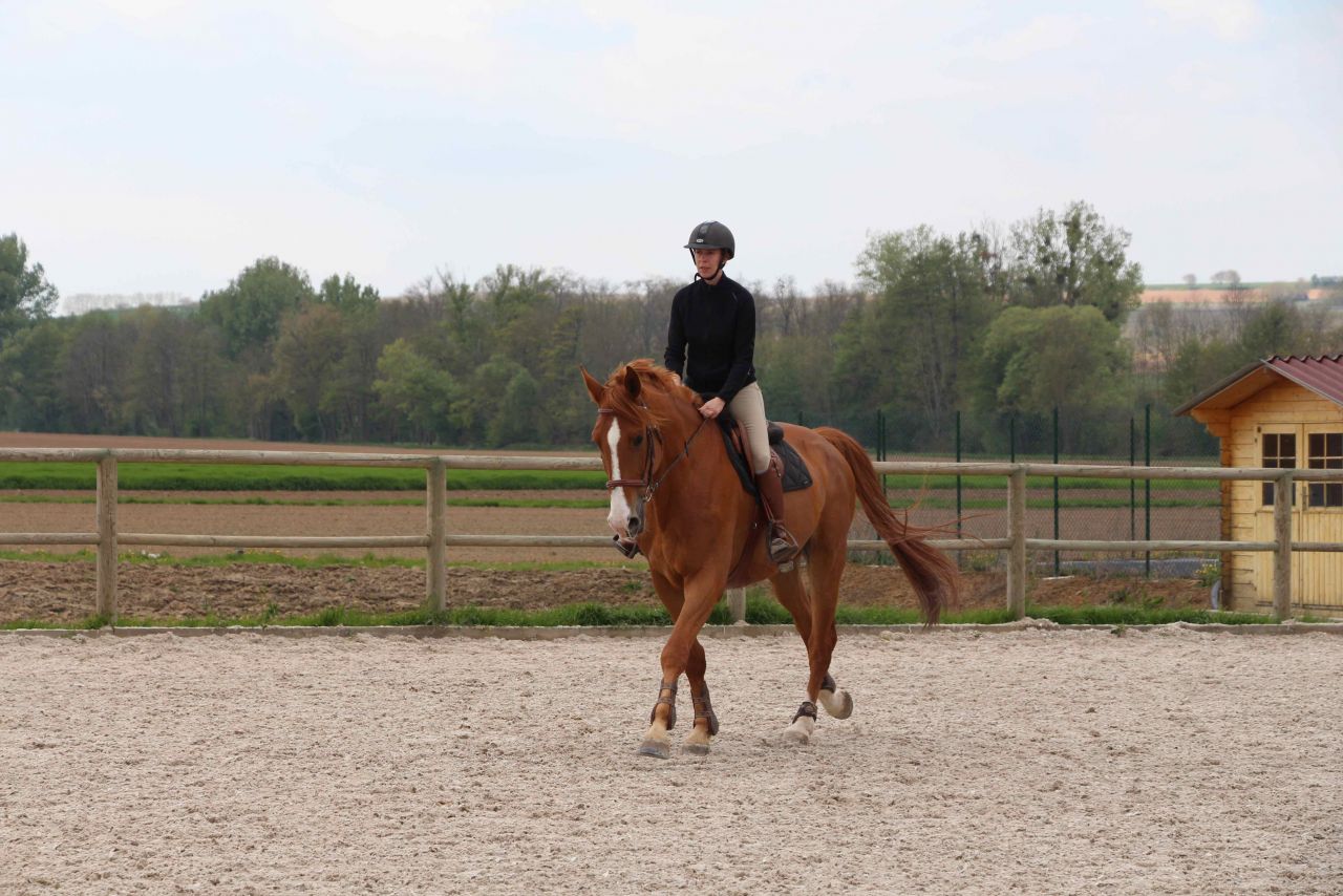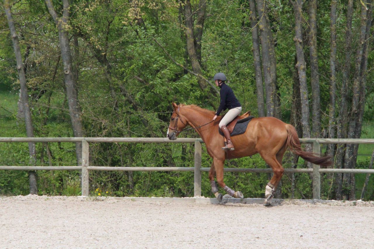 | Dire merci | Bon, nous après 2 pas en arrière, on revient sur des pas en avant. à peu près quoi .... hier, tpete dans le cul, d'une motivation sans limite (....) j'ai monté version "je suis fatiguée, je veux pas trop me fouler". ca nous a pas trop mal réussi. Le grand était relativement stable dans le contact, et ca c'est bon pétard, qu'il lève la tête la baisse ou quoi, c'était corrective par les jambes/ dos en restant au contact sans aller à la guerre. il était bien orienté, encolure en place (de ce que j'ai vu dans la vitre à chaque passage et senti sous le cul). J'avais même pas trop de différence de sensation quand il se mettait à faire crottin de montée de dos, donc j'en ai déduis que le dos devait être plutôt pas mal en place. le galop était facile, sans doute un poil plus de peps (comme d hab) aurait été bien, mais il a tenu son contre galop sans soucis, sans béquille et en montant enfin les épaules et avec l impression que qqun lui tirait la queue et le cul vers le bas. Et ça c'était fort Sympathique ! pour finir, un bon trot assez réactif. J'ai diminué de moitié les torsions d'encolure en faisant gaffe à ma rêne interne... on commence à piger le truc. genre... il était temps..... mais bon, le temps au temps, je ne suis pas pressée, on va finir par avoir qqch de potable un de ces jours. |
