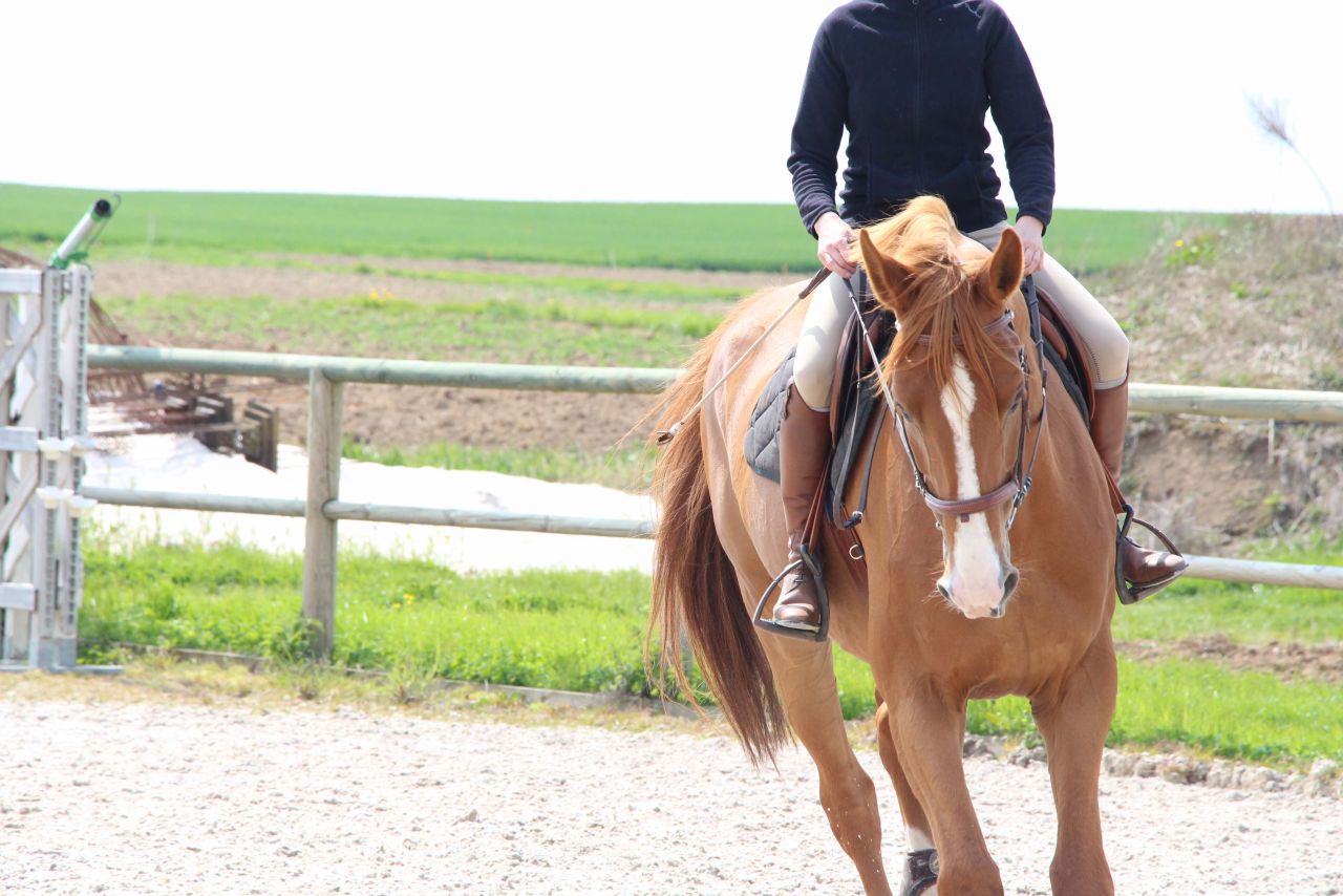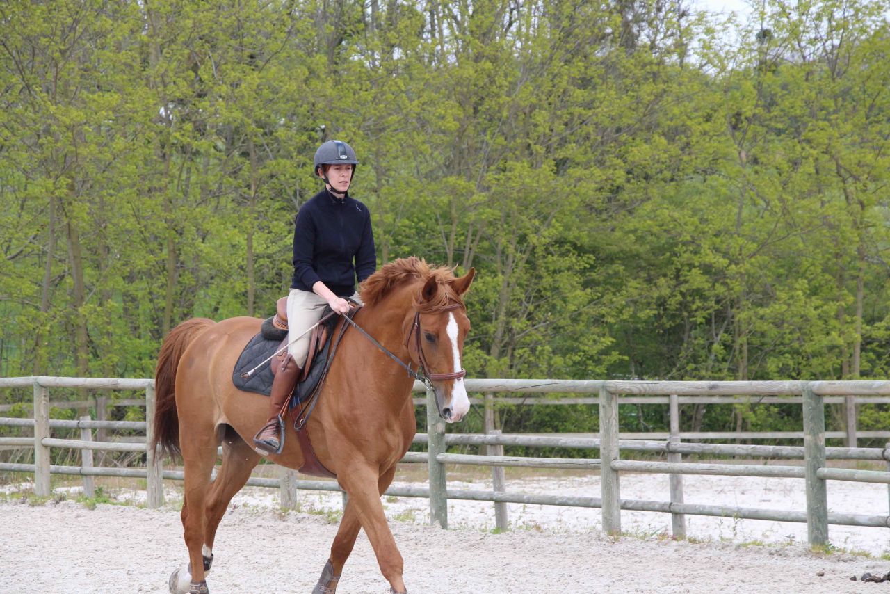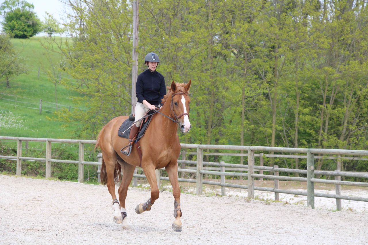| Dire merci | Bon, nous après 2 pas en arrière, on revient sur des pas en avant. à peu près quoi .... hier, tpete dans le cul, d'une motivation sans limite (....) j'ai monté version "je suis fatiguée, je veux pas trop me fouler". ca nous a pas trop mal réussi. Le grand était relativement stable dans le contact, et ca c'est bon pétard, qu'il lève la tête la baisse ou quoi, c'était corrective par les jambes/ dos en restant au contact sans aller à la guerre. il était bien orienté, encolure en place (de ce que j'ai vu dans la vitre à chaque passage et senti sous le cul). J'avais même pas trop de différence de sensation quand il se mettait à faire crottin de montée de dos, donc j'en ai déduis que le dos devait être plutôt pas mal en place. le galop était facile, sans doute un poil plus de peps (comme d hab) aurait été bien, mais il a tenu son contre galop sans soucis, sans béquille et en montant enfin les épaules et avec l impression que qqun lui tirait la queue et le cul vers le bas. Et ça c'était fort Sympathique ! pour finir, un bon trot assez réactif. J'ai diminué de moitié les torsions d'encolure en faisant gaffe à ma rêne interne... on commence à piger le truc. genre... il était temps..... mais bon, le temps au temps, je ne suis pas pressée, on va finir par avoir qqch de potable un de ces jours. |
