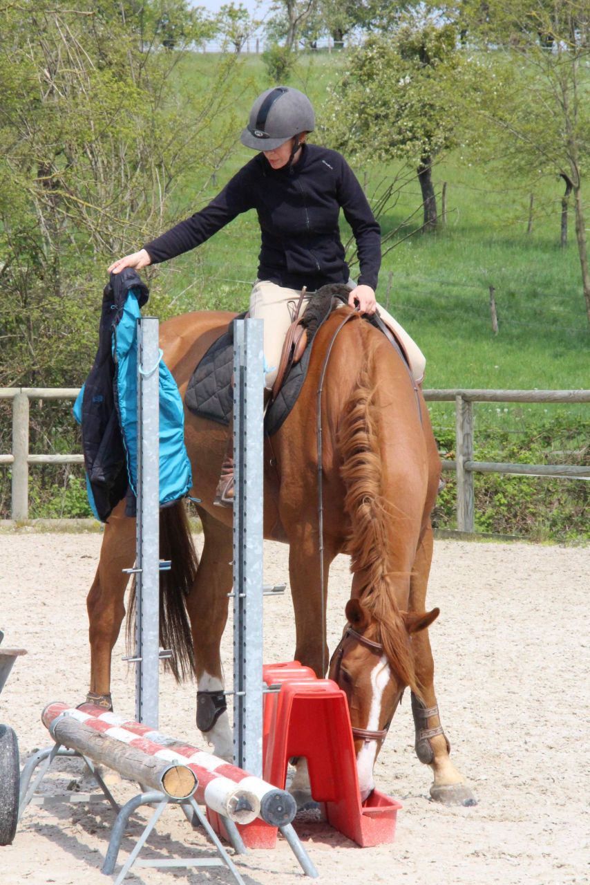 | Dire merci | les jours se suivent et ne se ressemblent pas. Aujourd'hui j'ai trouvé qu c'était pourri. J'étais pas dans mon corps (fatigue après les nuits, pas mangé...) Bref, pas de dos, pas de jambes, pas de tonus, pas de niaque, manque de concentration, pas de cheville au contact, jambes flottante et pas assez descendue. Le cheval moyennement motivé à fait le minimum. Pas de garrot aujourd'hui .... pas de décontraction vraiment ... bref, c'était un peu chiant, j'ai filmé quand même ... bon ... pis, des gens qui causent tout le temps ..... dans un manège, j'aime quand ça BOSSE pas quand ça piaille.... |