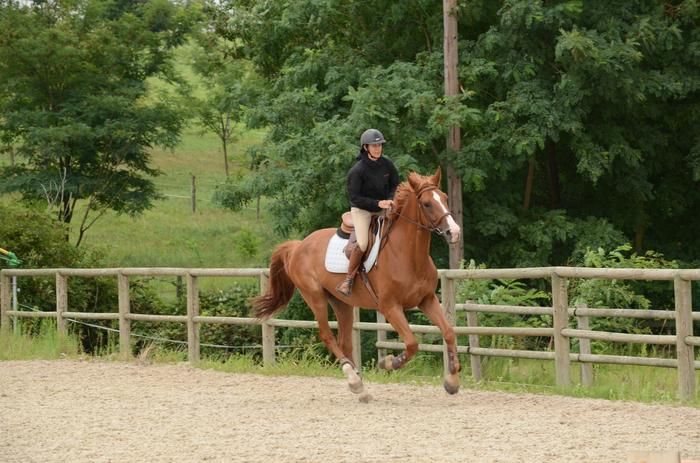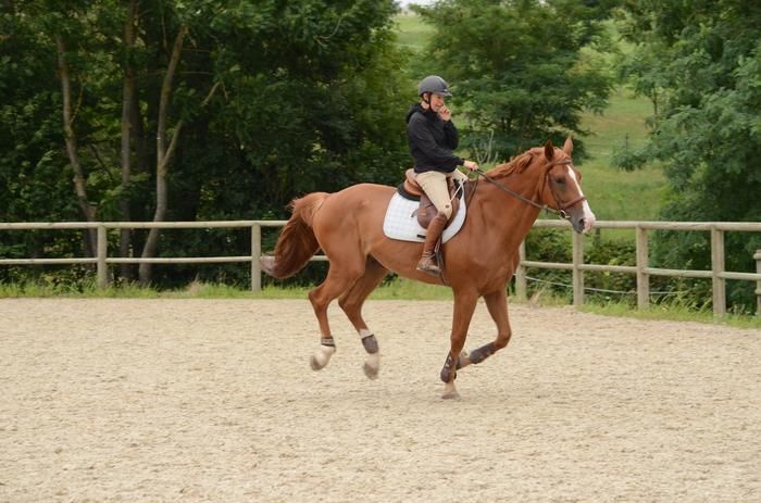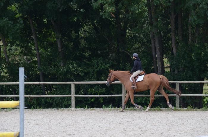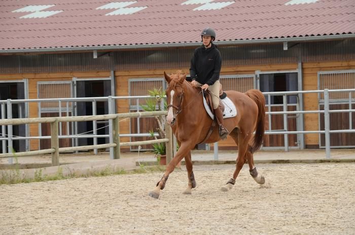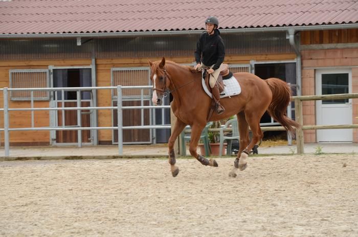 | Dire merci | Bref mes épaules précèdent encore mes ains oint du retard pour laisser passer souvent pour qu'il puisse dérouiller vraiment les épaules. Après c'est con car j'arrive à relâcher les rênes et qu'il se tienne, j'ai essayé de faire un effort qu'il colle pas TROP à la rêne externe, du coup niveau contrôle c était pas mal et niveau équilibre aussi d'ailleurs, puis j'ai essayé de l'aligner jambe interne - Rêne externe, ca me semble pas mal.... ca c'est une séance à peu près comme j'aime - pour une fois- En plus j'ai pu monter le galop un poil vers le haut, comme dit reste à trouver une meilleure place pour MEs épaules !!! |