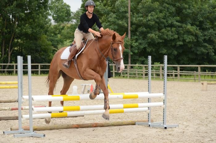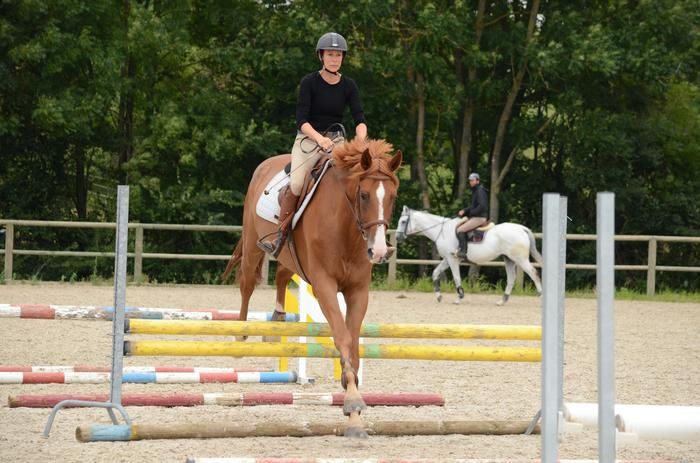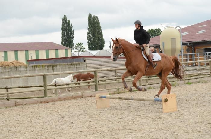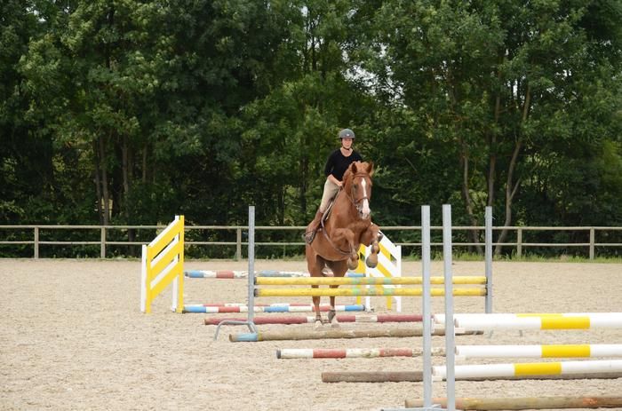 | Dire merci | Bon on a eu un petit piston pour faire une séance sautée hier avec Boiboisson. Mais groupe de 4 comme d hab pas grand chose au final. bon le cheval a pété en l'air. Moi j'ai loupé le pilotage derrière un obstacle (ou fallait changer de pied c'est con premier passage c était nickel et après il changeait pas et donc comme j ai tjs du retard sur ma position il a le temps de plonger, moi de le coller à ma rênes et du coup j arrive ni a tourner, ni à repasser au trot ca sentait le lynchage .... MAIS, comme je suis venue en touriste au cours, j'en avais un peu rien à cirer, j'étais cool, pas de pression (peut être trop peu ....) .... bon ce matin j 'ai monté le machin dans la même ignée que l'autre jour, avec objectif en avant et en équilibre .. mais je pense qu'il faut que je le monte un peu plus bas quand même car je trouve qu'il arrondi mal son encolure souvent et ca me plait moyen, ca fige un peu la ligne de dessus, il a besoin de plus de stretching encore à) mon sens ... mais bon, comme le stretching avec lui c'est un peu relou - limite sur les épaules... faut que je pense "horizontal" et ca devrait aller. J'ai quand même filmé des bouts de fin de séance, en plus vidéo courte du coup par une fois |