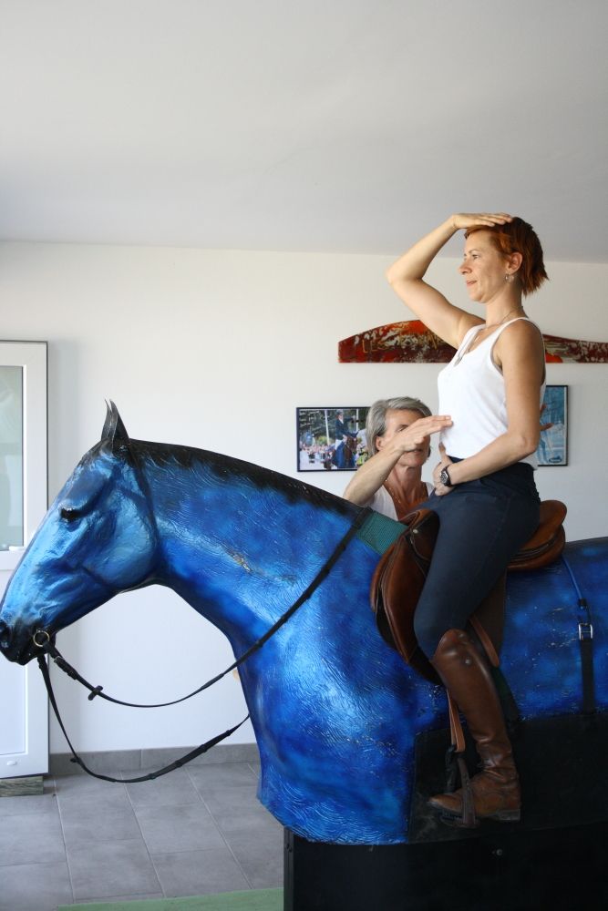 | Dire merci | Voilà voilà voilà ... J'ai repris le flambeau de l'organisation des stages de Simulateur équestre au sein de mon écurie. DONC... ben j'en ai refais AUSSI ça faisait un petit moment. J'ai fait le matin le simu et l'aprem la séance à cheval. Du coup le simu, c'était chouette, because d'habitude on se concentrait essentiellement sur la descente de jambe et ouverture mobilité du genoux.. (et la position globale aussi mais dans le détail on ne PEUT PAS tout faire en même temps) et là, on a pu attaquer un étage un peu plus haut : LA HANCHE. avec la sensation de tonicité du corps MAIS en gardant la fesse MOLLE. Ouais ouais ouais ... ben la fesse molle, c'est étrange - en fait - Mais les rares fois où j'ai pu reproduire à cheval (parce que quand j ai fait mes premiers simu il y a ...... 6 ans, après les séance j'étais complètement désorientée en revenant à cheval et maintenant, non en fait donc c'est plus simple) en tout cas, là où au départ j'avais l'impression toujours que le simu FIGEAIT, maintenant j'ai l'impression que c'est moi qui suis figée et que ca va me débloquer un peu. A partir du moment ou la jambe descend (ca par contre sur simu ca va mais à cheval c'est plus compliqué surtout à droite) et qu'on peut bosser sur la hanche, c'est vraiment pas mal. Mais faut trouver les sensations, c'est un peu bizarre. Puis moi, avec ma cambrure, c'est chaud patate pour garder le lainage qu'il faut sans se cambrer. Pour le coup c était chouette car la nana avant moi avait tout le problème inverse de moi, un bas du dos en béton ultra figé et moi trop Laxe dans le bas du dos avec le manque de soutient.... |