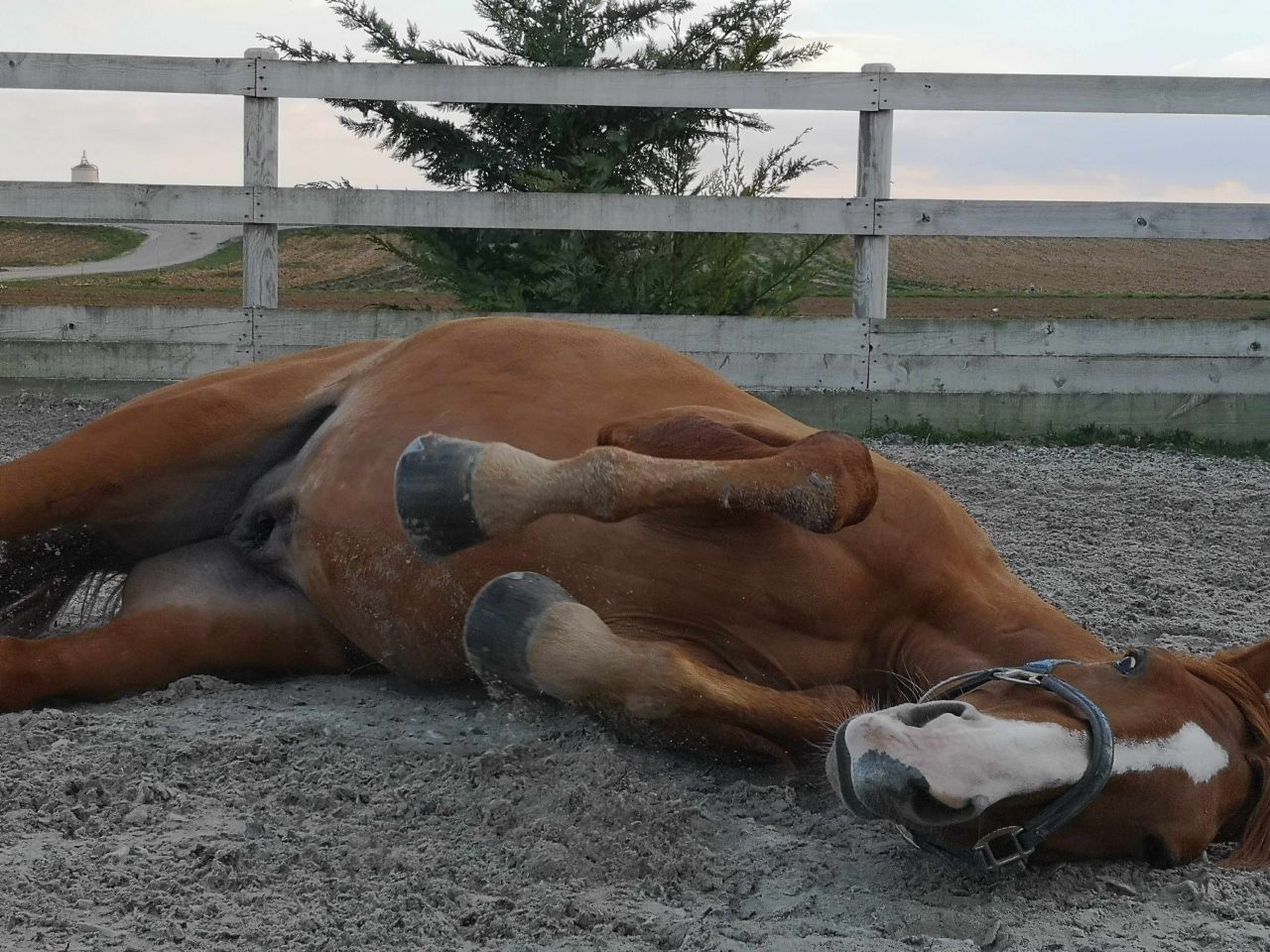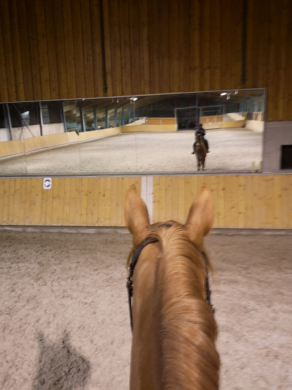| Dire merci | oui je suis d'ailleurs censée le relever plus et le laisser "vivre" devant. mais là pour info, moi je suis à l'économie, en fait je ne fais quasi rien à part ferme les doigts au 3eme temps du galop pour pas qu'il plonge. je suis posée dessus presque en mode sieste. Pas une goutte de sueur en descendant de cheval. Puis en selle de dress.. j'aime moins en selle CSO je me fous en équilibre et lâcher éventuellement je bille dedans et lui relève le capot. JE lui laisse le temps de se faire le dos aussi, y'a pas urgence galoper nez par terre c'est sa zone de confort, donc horizontal, moi ça me va très bien pour le moment en fait et je veux pas trop forcer toute seule de lui relever le devant car il relève quand il abaisse les hanches. et au manège .. on peut un peu rêver pour l'avoir Quand je le bosse "vraiment" j'ai la tête trempée. |