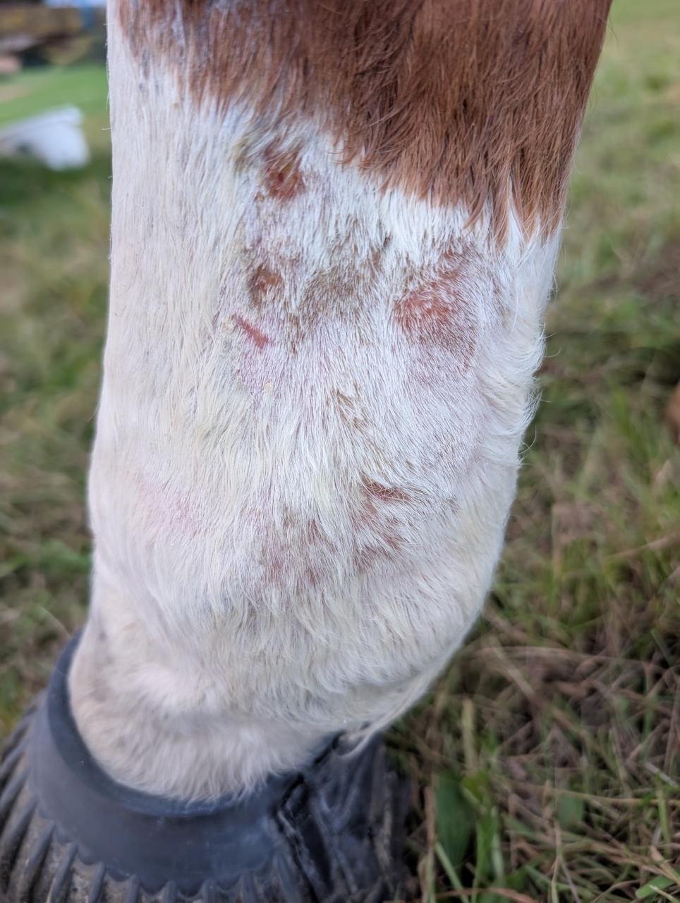 | Dire merci | J’ai les mêmes croûtes que toi Nous avons quasi tous eu ça a l ecurie en Septembre octobre et que sur Le blanc Story a aussi été soi avemix Le gras c’est pire que tout Le seul truc qui contient pour moi c’est de la betadine iodée avec alcool a 70 degrés Je ne douche pas et je touche très peu sinon poteau Aucun véto ne sait soigner ce truc. On dirait un champignon ou un acarien je sais pas c’est un truc de OUF ces croûtes |