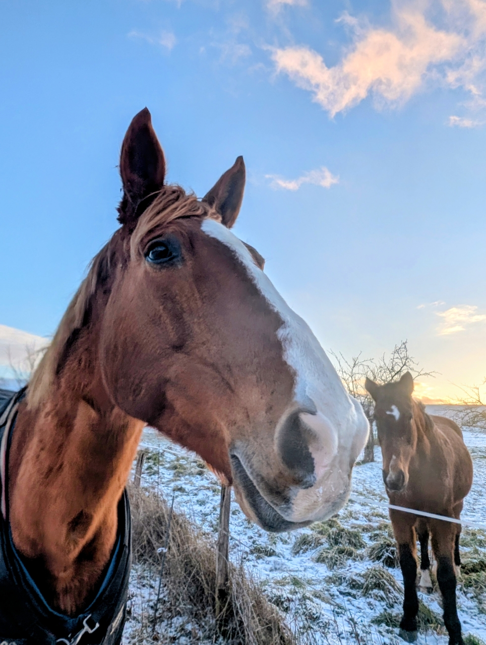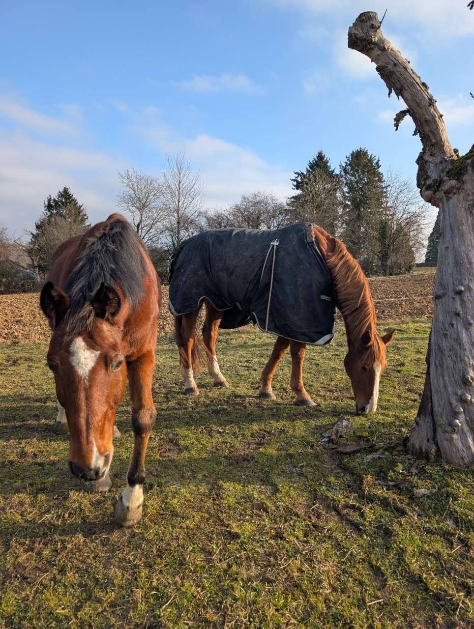| Dire merci | On kig=ffe le froid et sec (enfin ) apres un mois et demi d'humidité, à patauger pour vider les brouettes de crottins etc .... et enfin de la lumièèèèèèèèèèèèèèèèèèèèèèère Syre cette année a de la compagnie dans son paddock d'hiver ( d'habitude il est seul ) ![]() ![]() |
