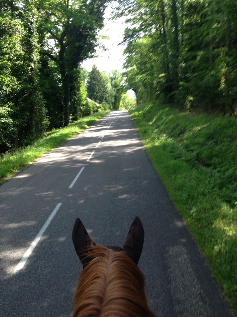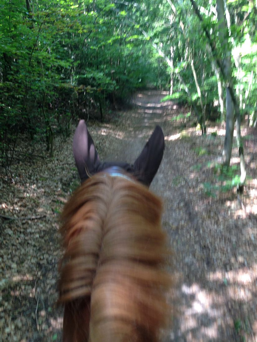 | Dire merci | Ce matin .... Balaaaade Avec un Syre tip top. Lui ai mis le bonnet, enlevé l'amortisseur ( traces de transpi dimanche pas belles...) et son autre mors donc double brisure plus fin qui va bien ( mors de concours à la base ) il s'est tordu un peu mais rien de grave et pas tout le temps. Au contact c'était pas mal, rênes longue sur la toute fin aussi ( au début il se barrait un peu)...1h30 de forêt, route, village au poil ! Trop bien la forêt et au moins ça donne envie de se promener !!! Bon le travail latéral du coup voilà hein ... Mais ça permet de travailler l'impulsion sans les jambes ! Y a juste a caler l'assiette et les épaules selon ce qu'on veut. Et du coup pas de jambe du tout... Mais il précipite pas mal quand même faut que je veille à la qualité de son pas. |