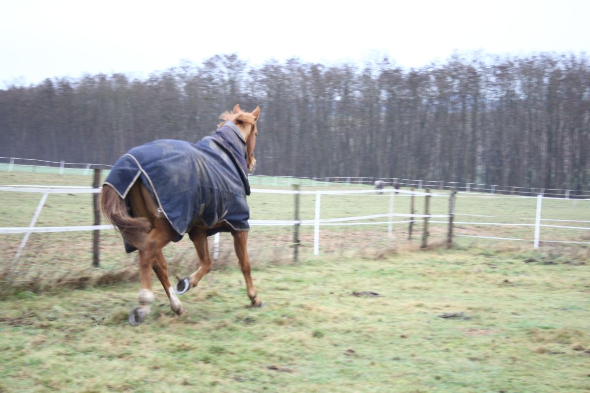 | Dire merci | Il a même super bien galopé oui en équilibre et tout achtung !!!! Mais j'ai galope tout l'hiver dernier la dedans mais là avec le jarret j'ose plus du tout du coup oui si dans ma tête j me retiens il ne fera pas c'est sur !! |