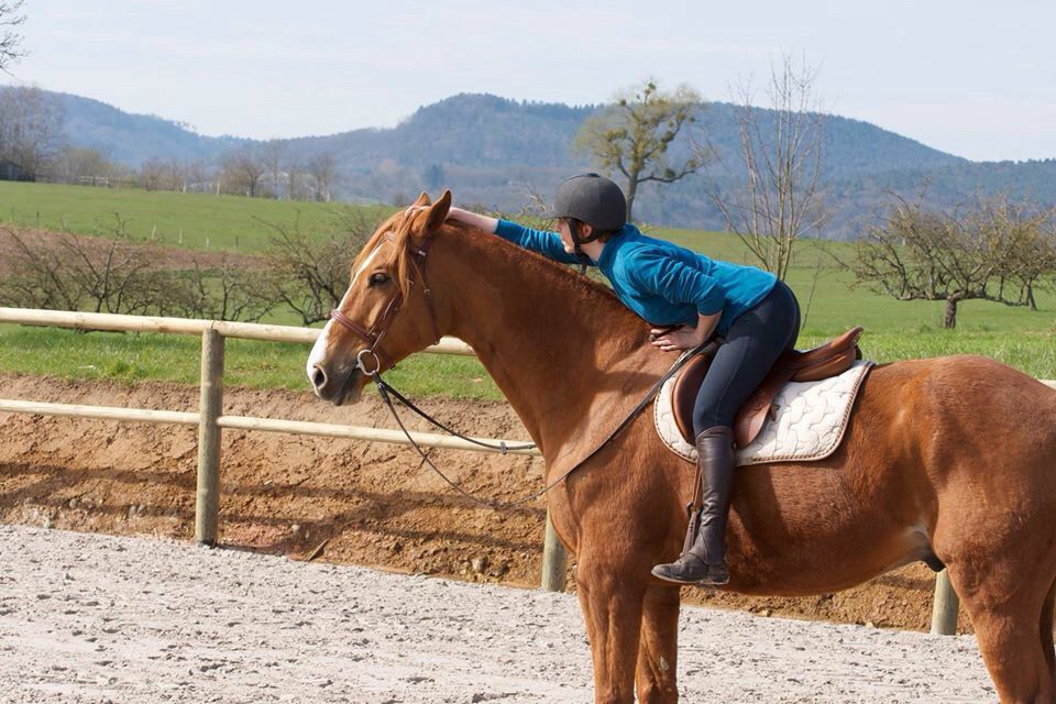 | Dire merci | Bon, sinon la leçon. On arrive, le cheval est MEGA zen je me dis que ça va être cool C. est en carrière, du coup sa juju à elle déraille un peu elle est chiante, et la leçon dure jusqu'à ce que la bourique se calme et rebosse correctement malgré notre présence (c'était la première fois qu'un autre cheval venait dans le manège avec elle ). donc nous on marche , je ne fais que marcher et m'arrêter pour regarder le paysage ... Elle s'en va.. On marche. Direct il nous dit de ralentir car oui mon cheval a une cadence lente, faut pas laisser courir. Ensuite il me demande une cession pour voir comment bougent les postérieur, puis des EED. .... |