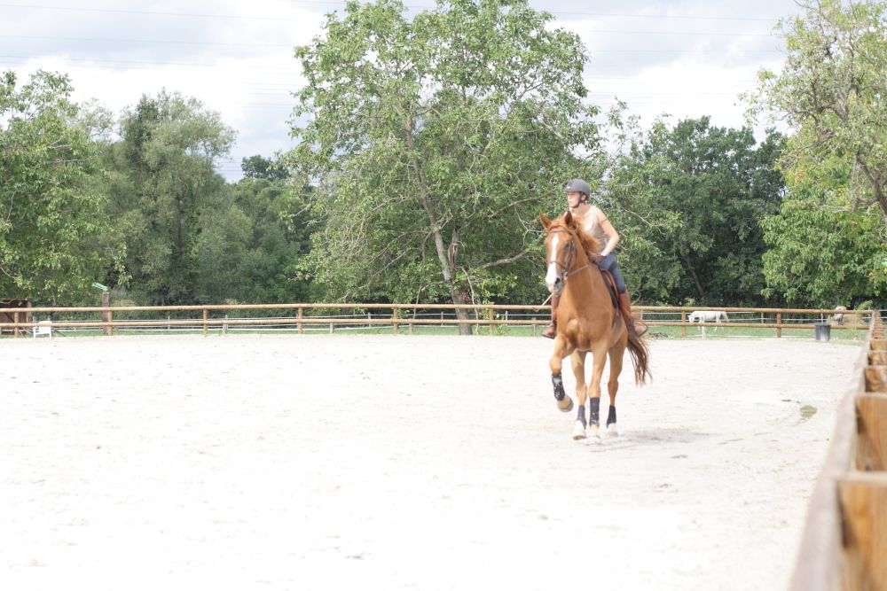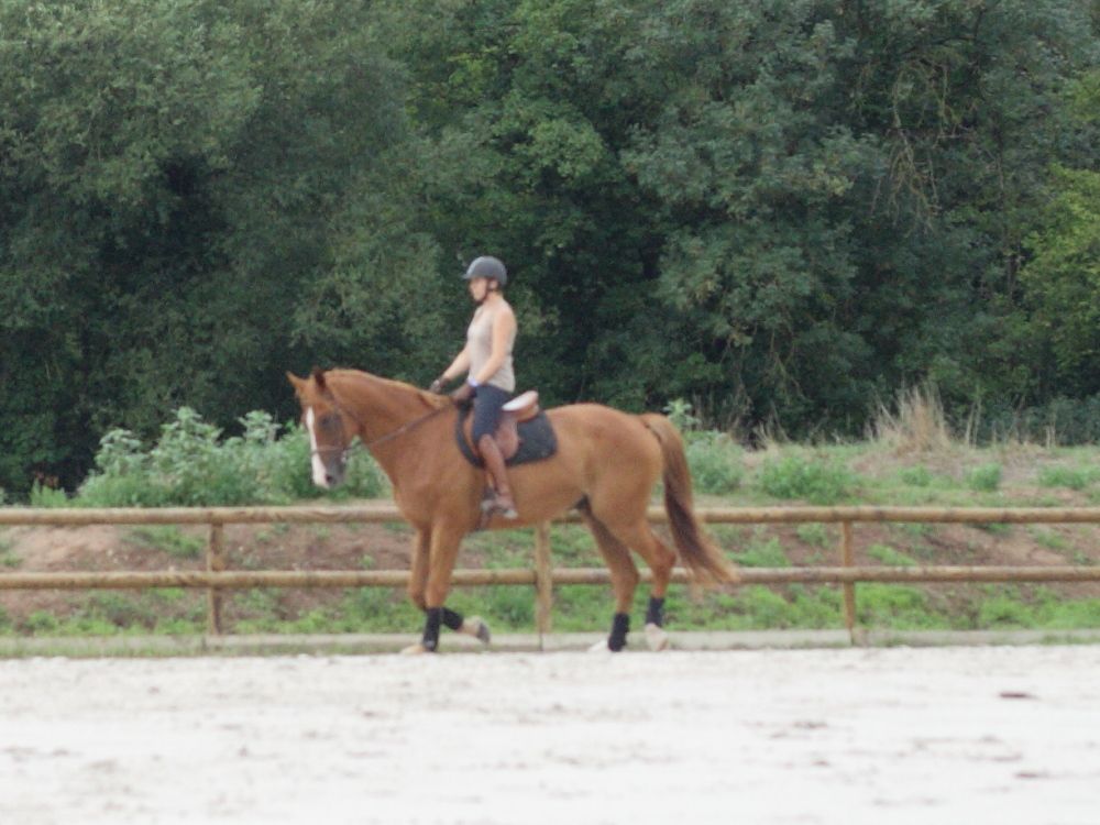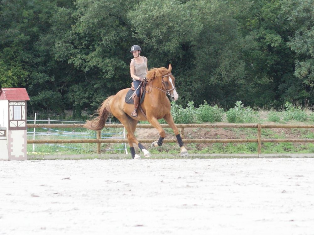 | Dire merci | je crois qu elle est restée 2 mois quand même .. ??? Bon on a pas baigné nos petits po,eux aujourd'hui mais on a monté . On avait une copine à clem avec nous qui a fait quelques photos. Mais euh, quand on n'a pas l'habitude du reflex, je crois que c'est pas si simple donc on va mettre quelques petites photos en même temps perso, à part essayer de galoper en avant et de l'avoir décontracté au pas et au trot on fait pas grand chose encore ![]() Avec un soutif de merde où tu te retrouves à moitié à poil c'est encore moins efficace. les jambes qui se promènent ... bref la touriste attitude ..... Bon allez, on va s'dire qu'on va refaire un semblant de muscles en remontant régulièrement - et du souffle - et .. la totale quoi. |