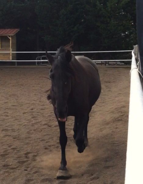 | Dire merci | Contente nous avons fait une bonne séance ce matin. Toujours beaucoup de progrès dans le galop et le trot était beaucoup mieux. En revanche je la trouve un peu réactive au sang l'âge enfin surtout quand je vais chercher la sangle mais bon ça reste très gérable |