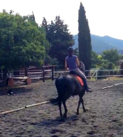 | Dire merci | Et au boulot!!! On rentre et on sort les hanches... Un peu dur. J ai du mal à ne pas me tordre et elle n y met pas trop de bonne volonté non plus On enchaine ensuite dans le trot puis avec départ au galop en fin de ligne après avoir remis droit puis en légère épaule en dedans. Les photos vont suivre j ai encore des rennes trop longues et une fâcheuse tendance à lever les mains dans le galop quand il faut relancer ou monter d avantage. |