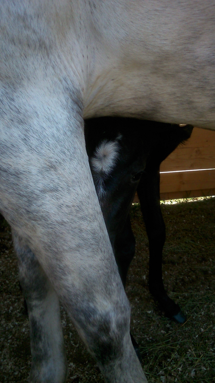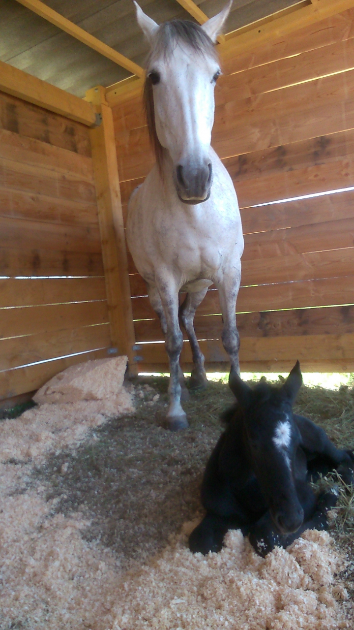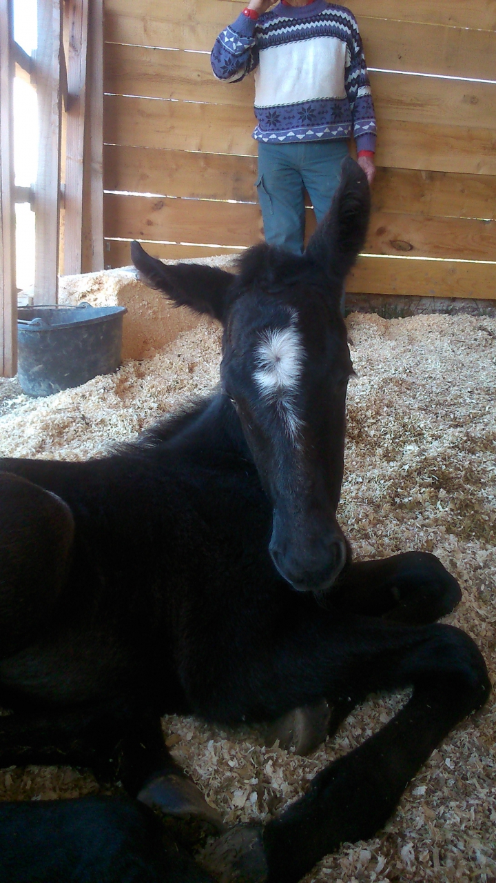 | Dire merci | La voici la voila !! après 11 mois de patience ...??? Blue Trouble est née a 19h30 hier( 11 avril) une belle petite pouliche bien en santé pleine de vigueur et pleine de curiosité après même pas 12 h de vie elle vient chercher les grattouilles!![]() ![]() Message édité le 12/04/15 à 18:34 |