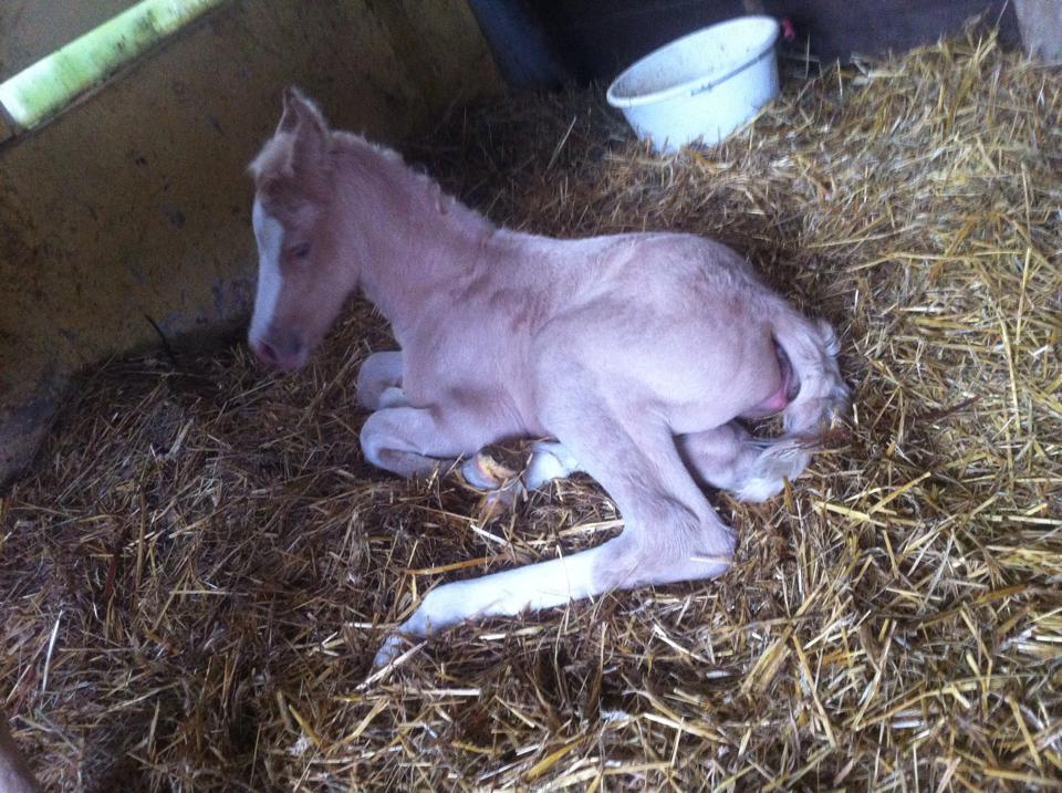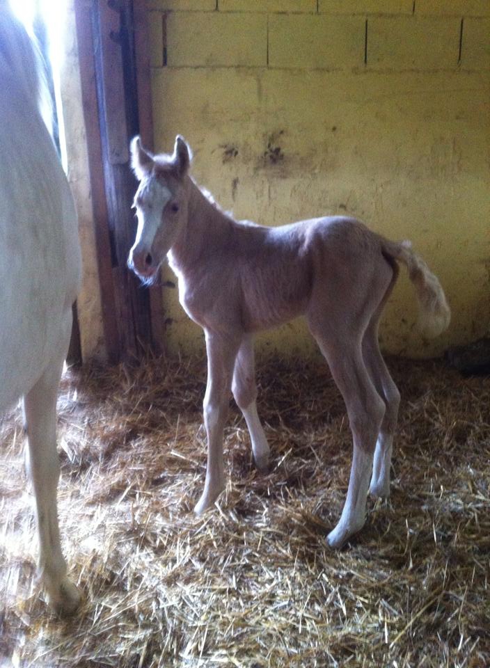 DéconnectéDire merci | Nous y voilà !! Poulichette est née cette nuit à 1h. La jument a assuré pour son premier poulinage, il a fallu aider un peu et le véto est passé voir si tout était bien délivré, pas de déchirure ou meurtrissure à l'intérieur (j'ai du aller chercher un antérieur un peu coincé). Elle est douée pour téter et ma jument est plutôt patiente. Que du bonheur. Et cerise sur le gateau elle est MAGNIFIQUE. Mais pas isabelle , elle est palomino avec trois balezanes haut chaussées et une tâche blanche au milieu de la jambe. Grande liste blanche... Elle est immense.Bon une photo sera plus parlante, je vous mets ça dès que je peux, j'ai aussi des 2 pattes à m'occuper. |